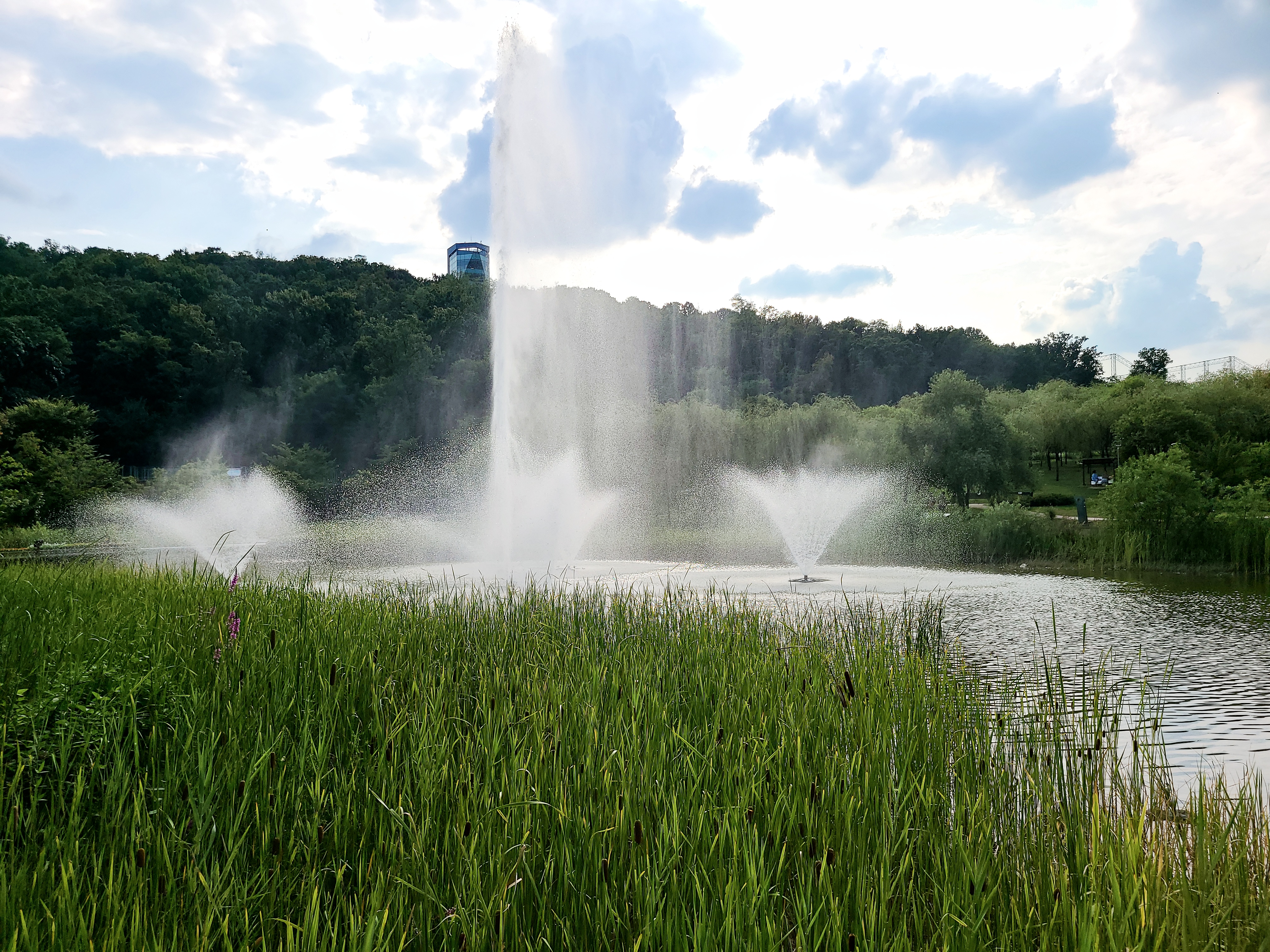 분수가 한창 물을 내뿜고 있었다.