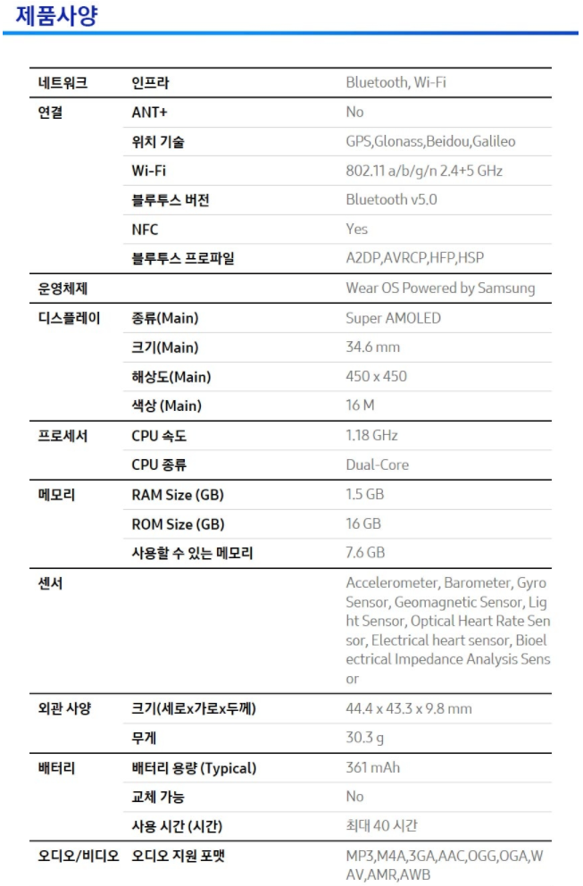 ~ 마지막으로 갤럭시 워치4 스펙 ~