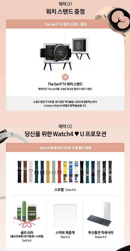 혜택으로 7% 할인 + 워치 스탠드 + 추가 사은품을 지급하고 있다.