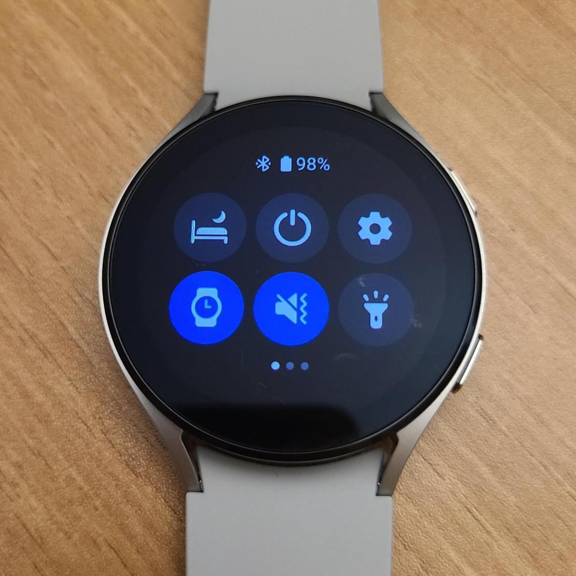 1. 갤럭시 워치의 홈 스크린에서 상단을 슥 쓸어내리면 상태 창이 나온다.