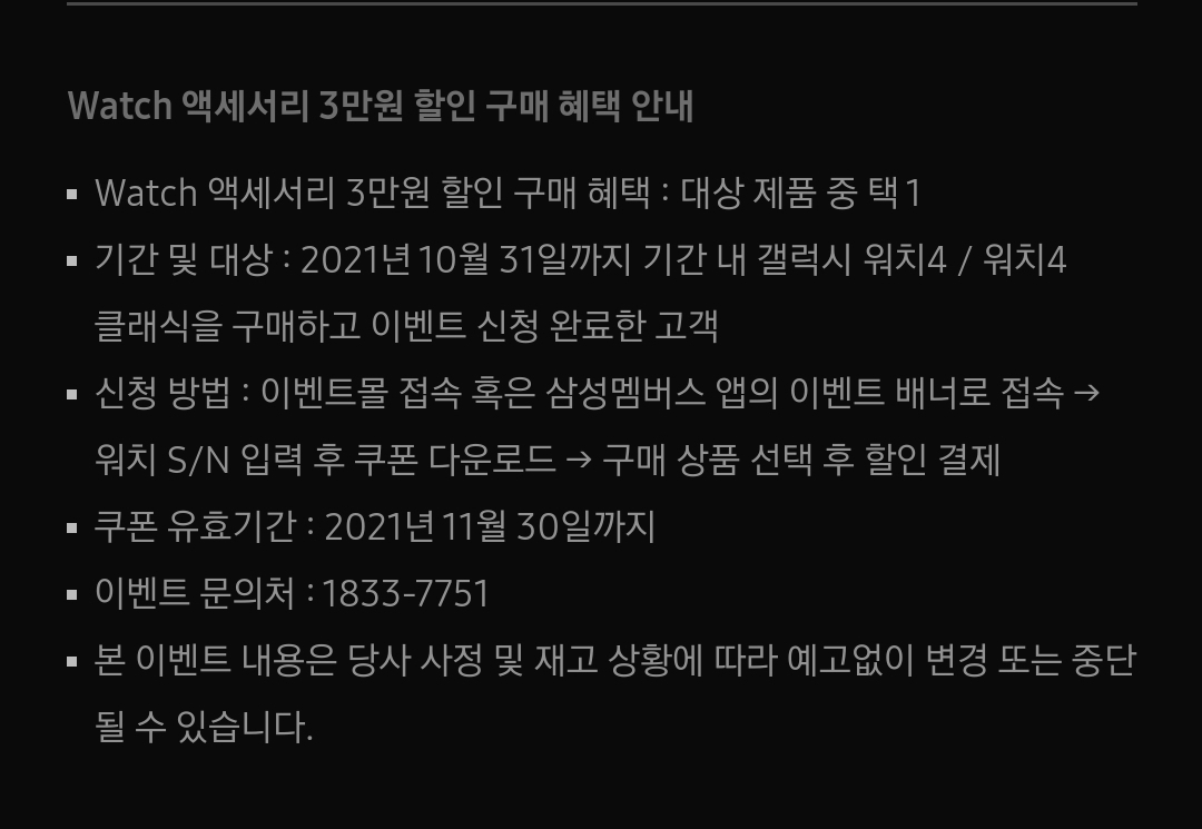 혜택 조건1: 10월 31일까지 갤럭시 워치4를 구매한 고객