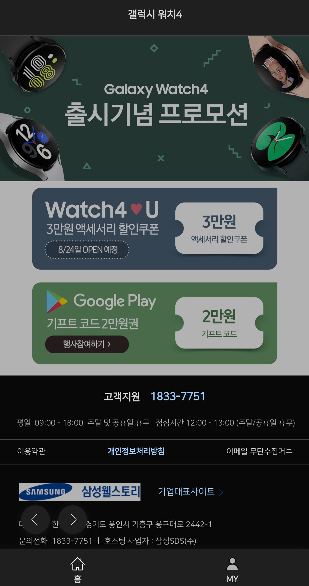 1. 이벤트 몰 홈 페이지에서 갤럭시 워치4 이벤트 배너 클릭(터치)