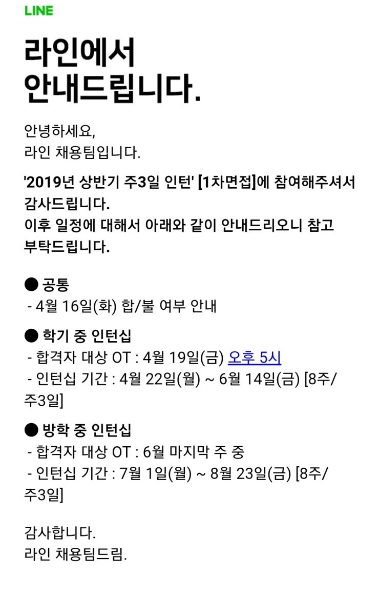 - 라인 인턴 면접 결과