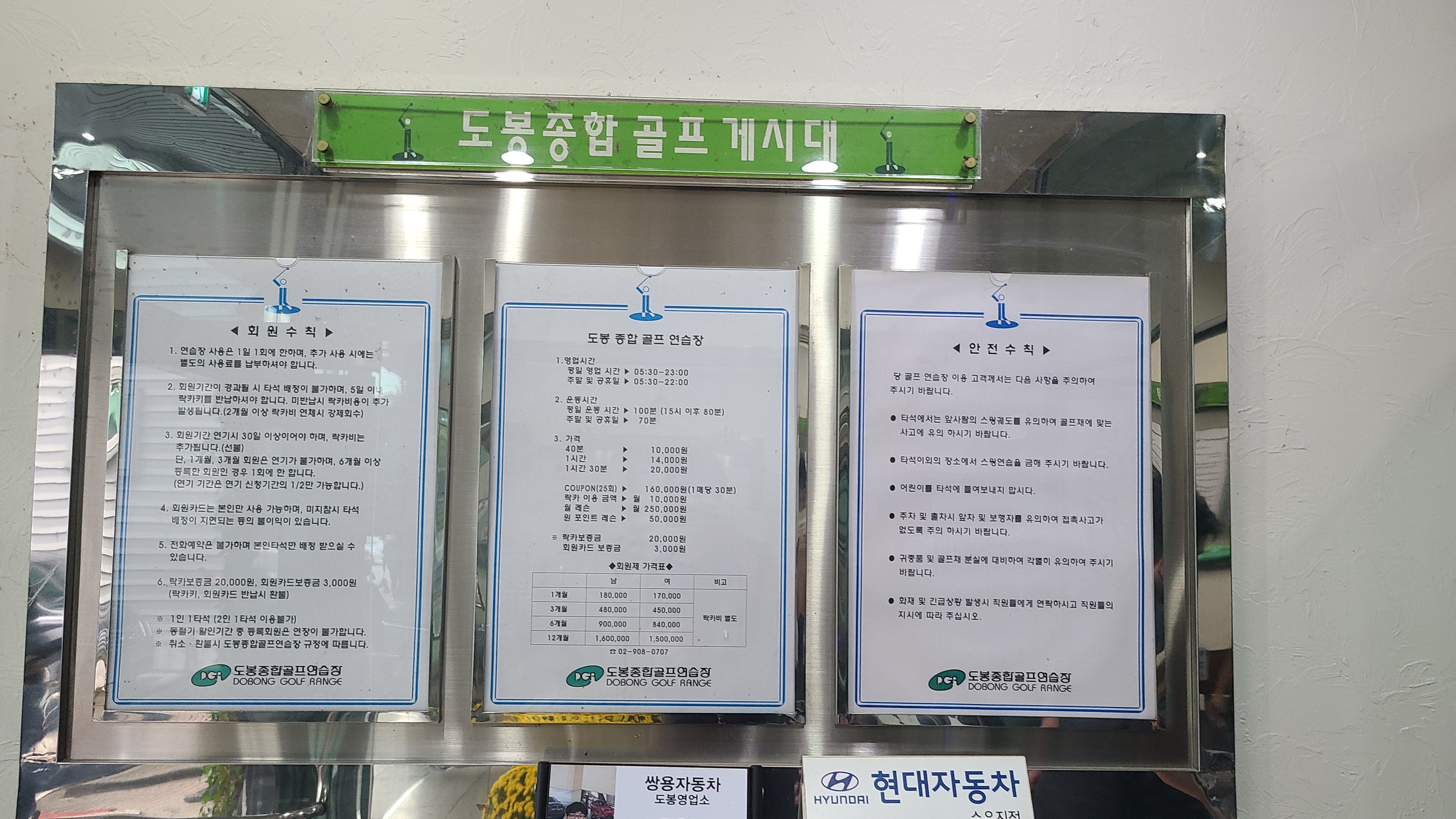 골프 연습장 안내판이 보여서 정보 공유를 위해 촬영했다.