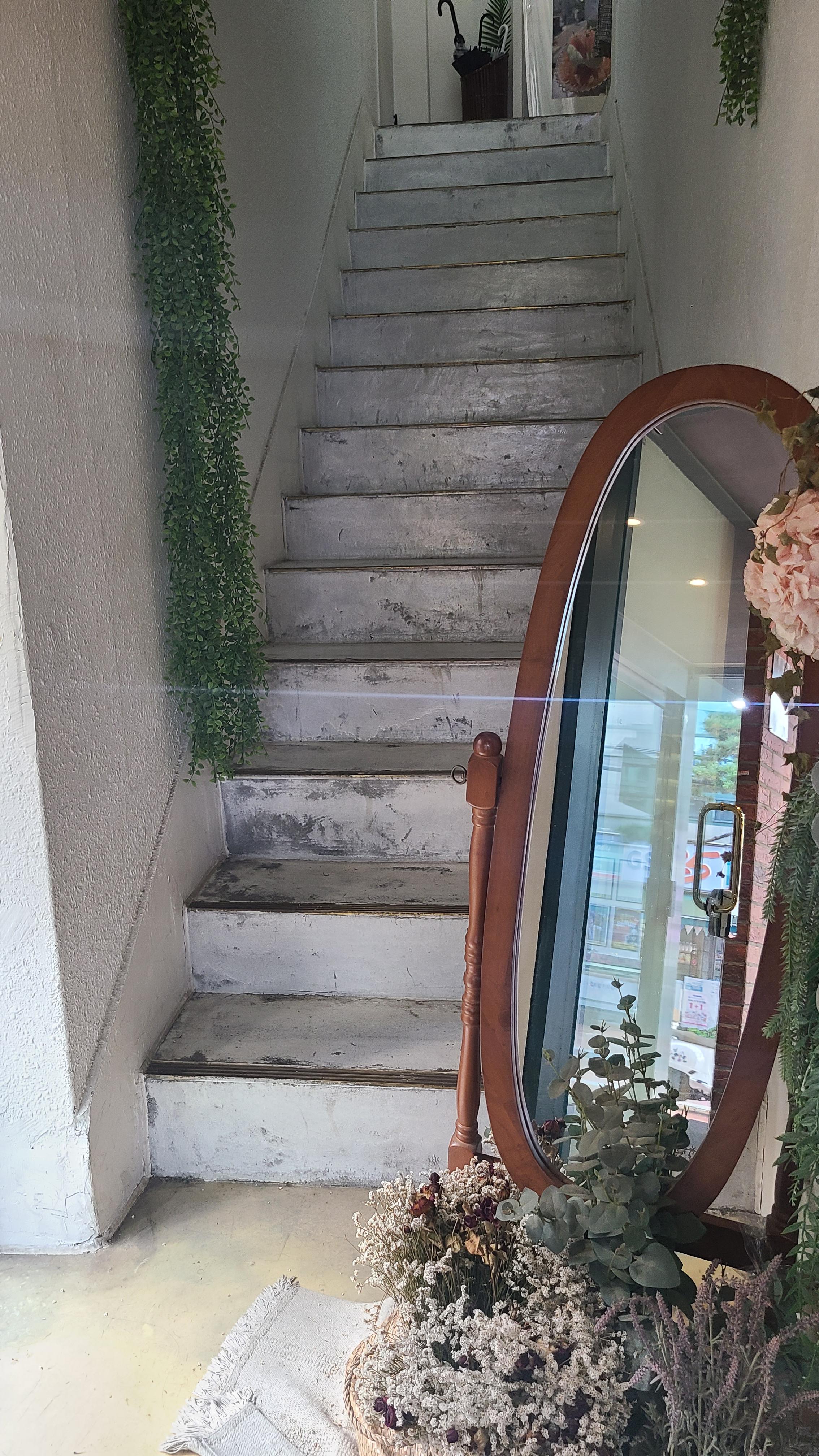 카페는 건물 2층부터 시작한다. 1층의 카페와 식물들 덕분에 분위기가 사는 것 같다.