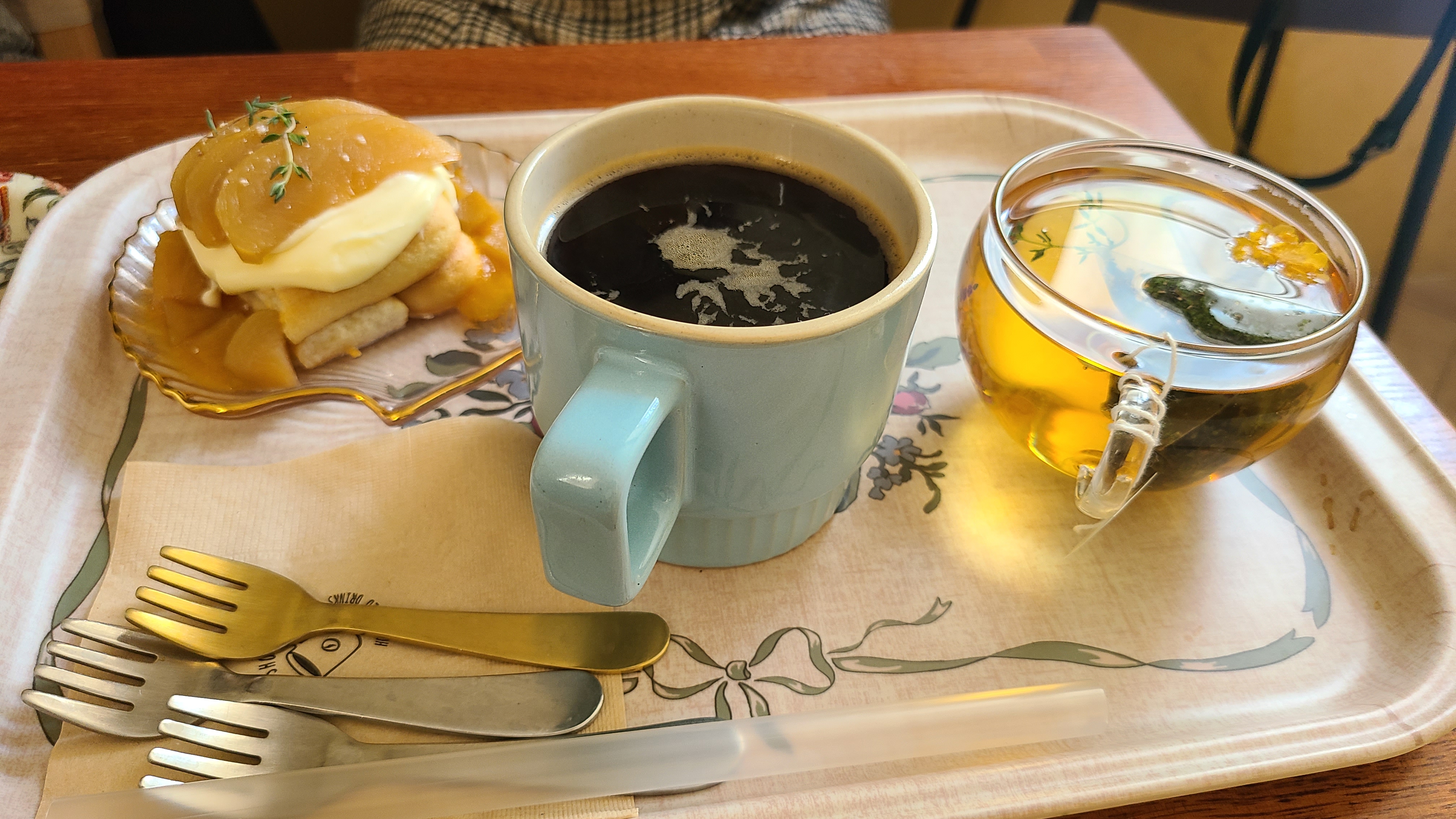 - 복숭아 마스카포네, 아메리카노, 페퍼민트 차