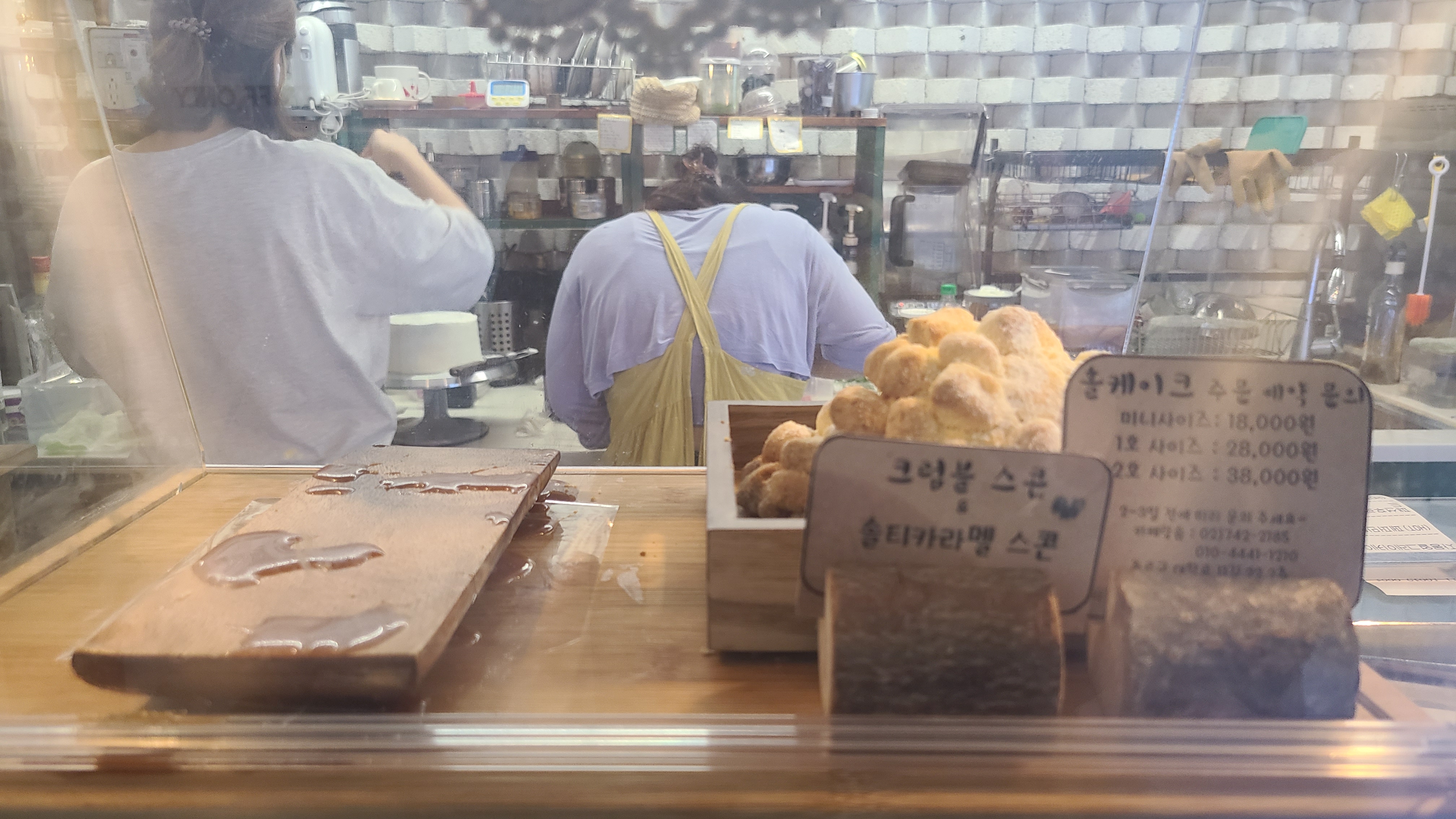 사장님으로 보이는 분과 직원분들이 음료나 빵 종류를 탁 트인 공간에서 직접 만들고 계셨는데