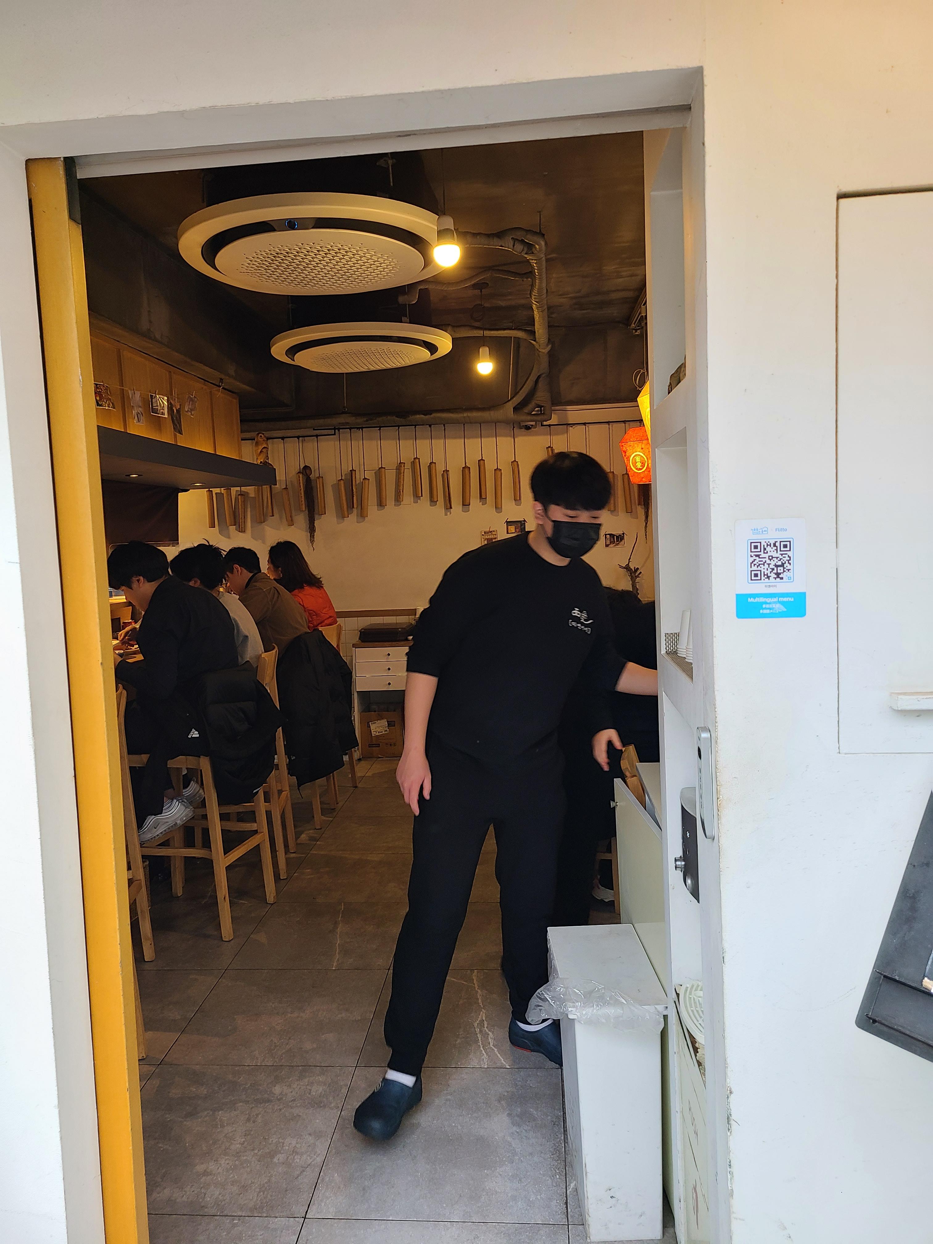 일본 라멘집처럼 일렬로 된 바 형 자리가 있었다.
