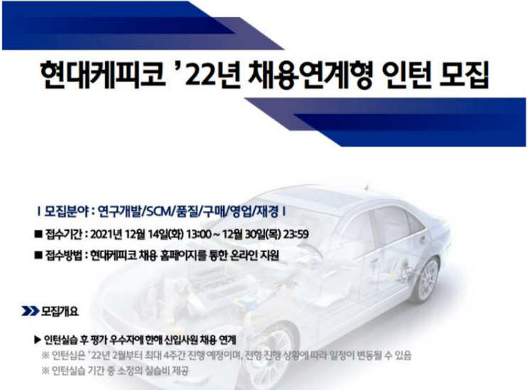 [2022] 현대케피코 '22년 채용연계형 인턴 모집 + 연봉,평점,복지 정보