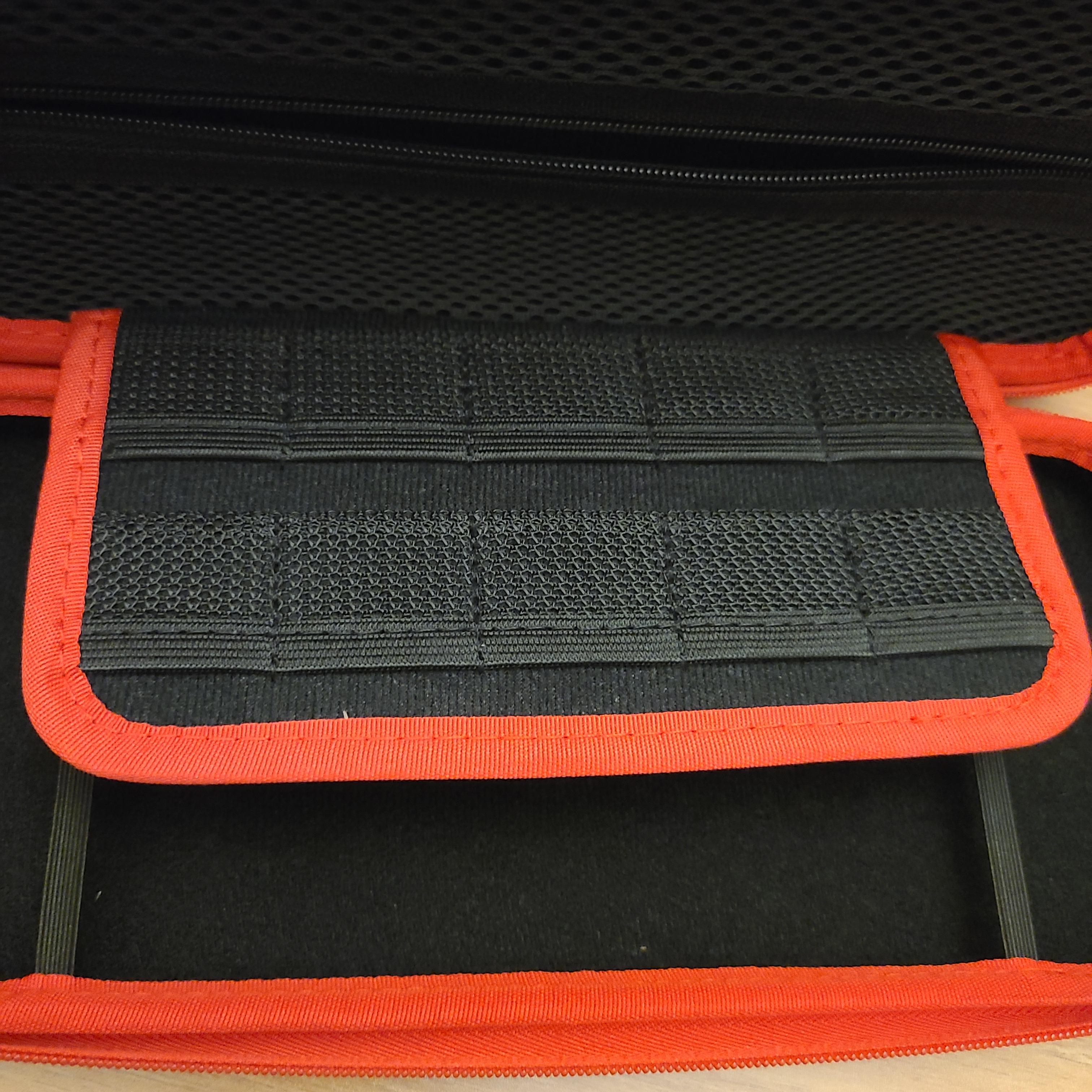 겉은 단단하고 내부에는 게임 칩 보관 주머니와 잡동사니를 보관하기 위한 공간이 있다.