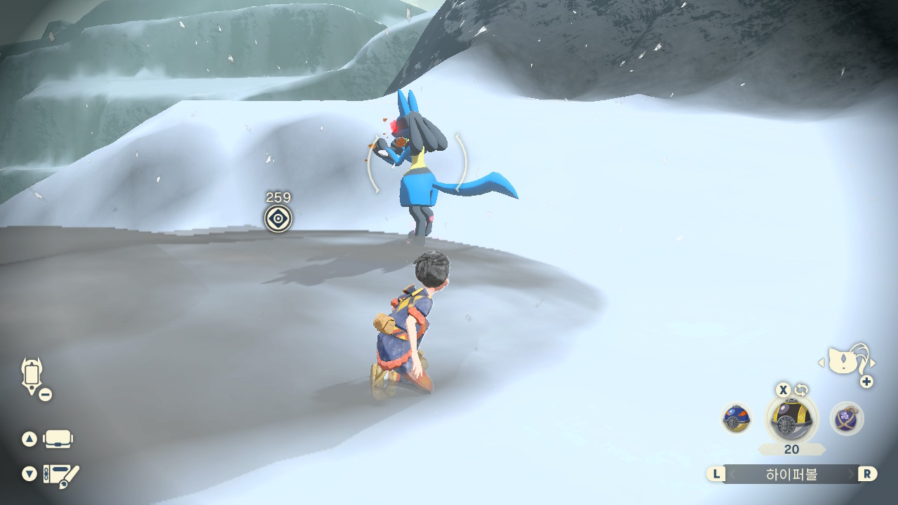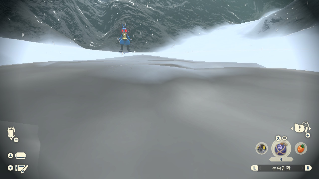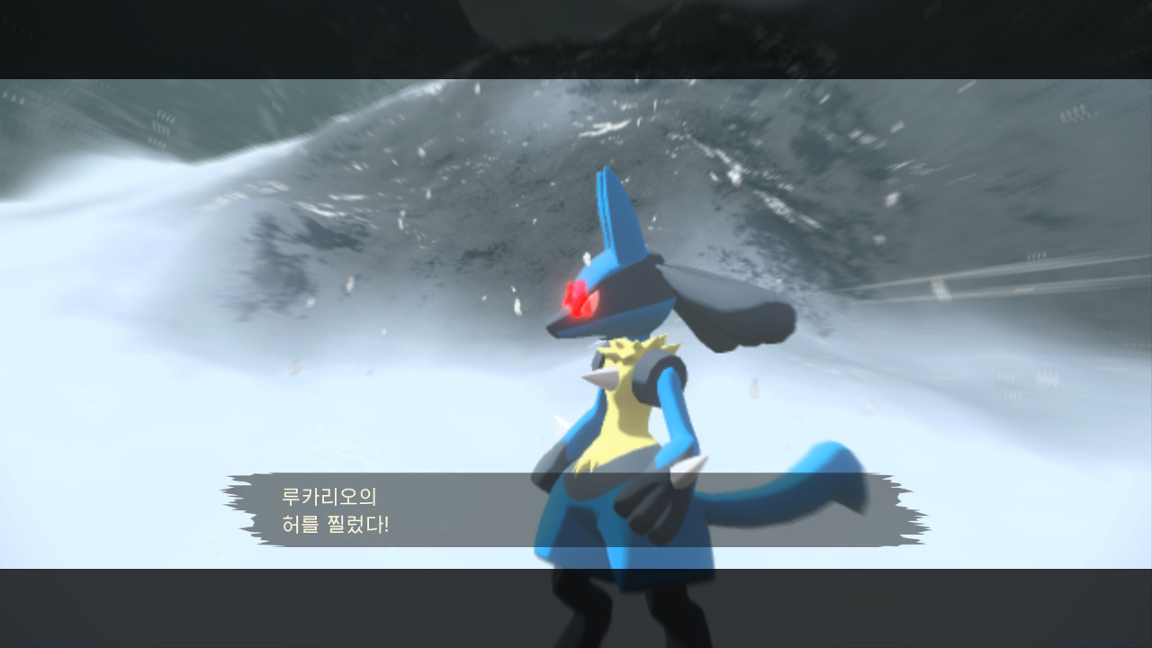 순백 동토로 향해서 얼음귀신 폭포, 설경온천으로 향하면 루카리오를 만날 수 있다.