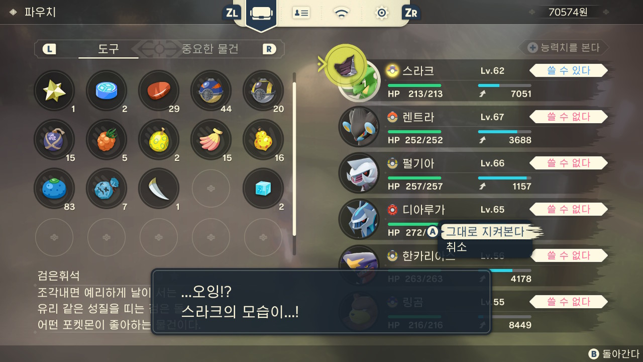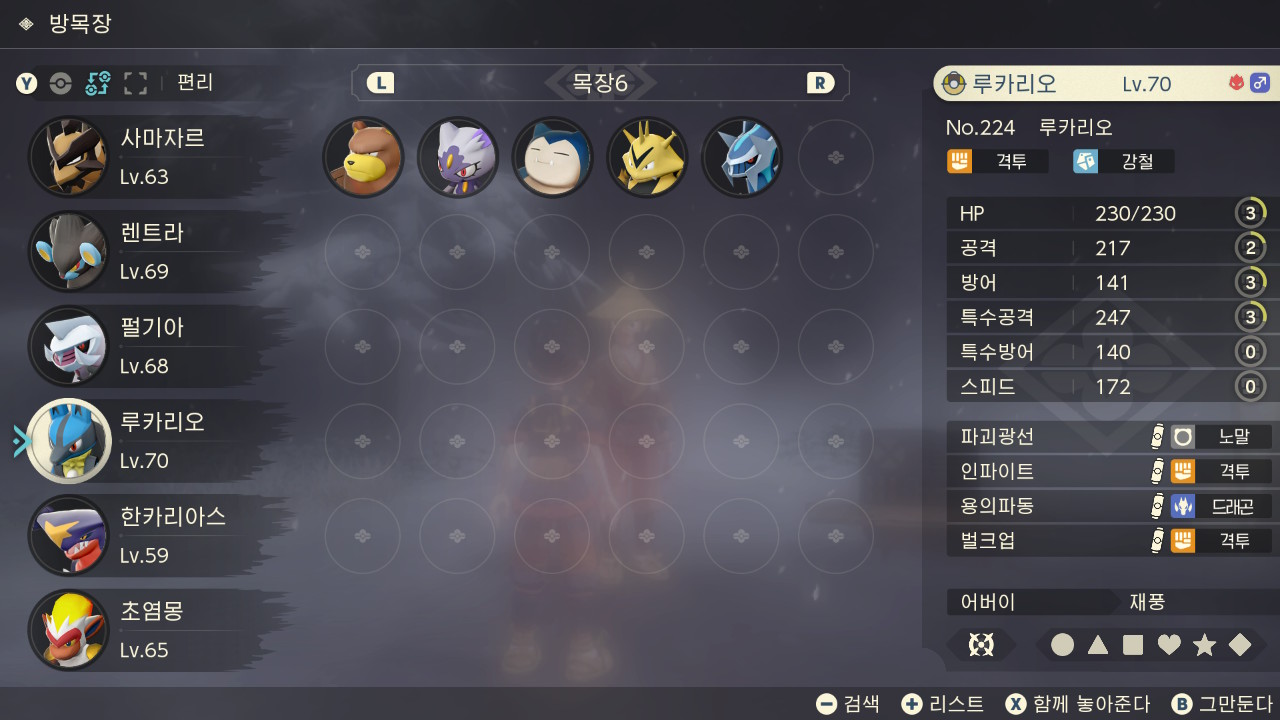 레벨 70인 루카리오는 포획에 어려움이 있었다.