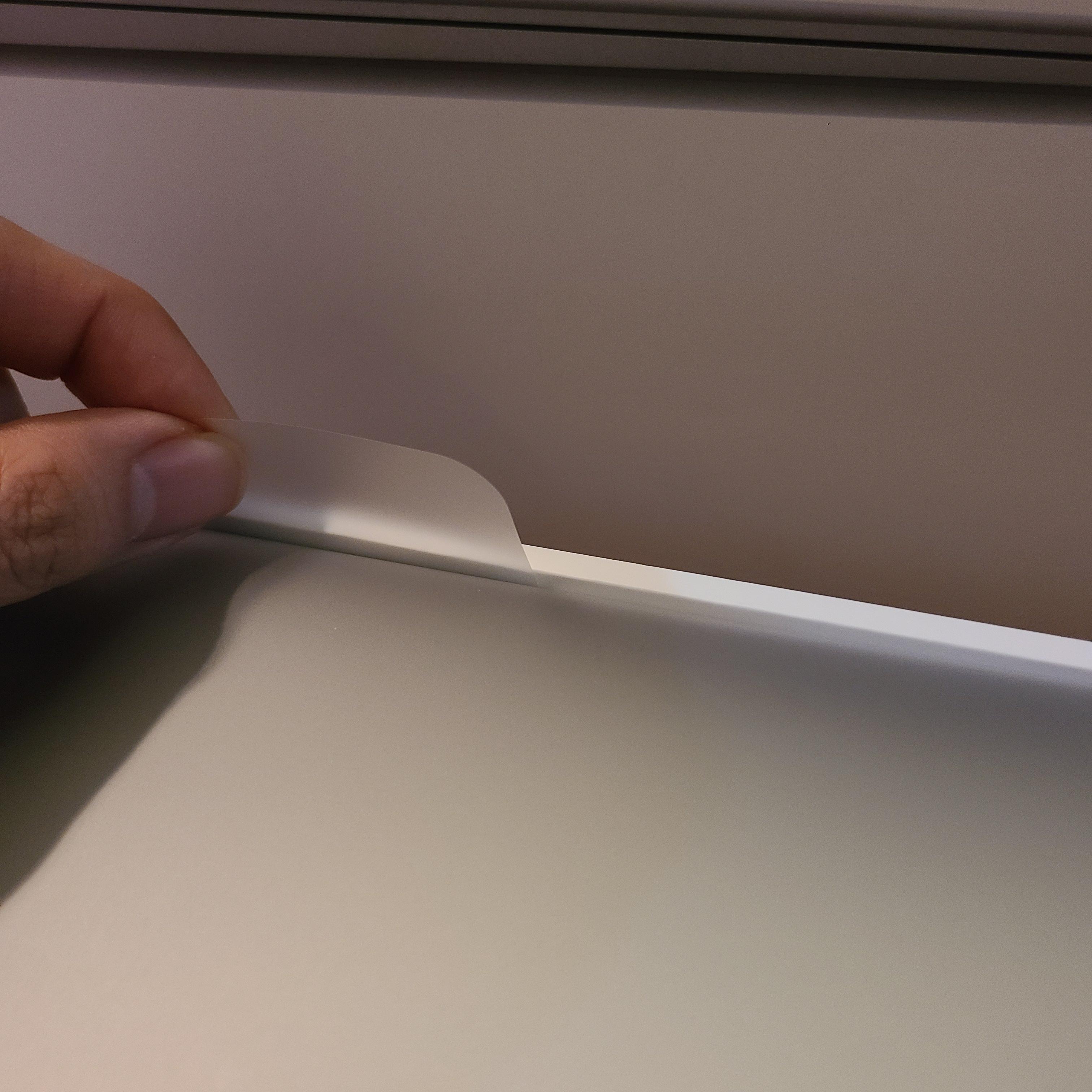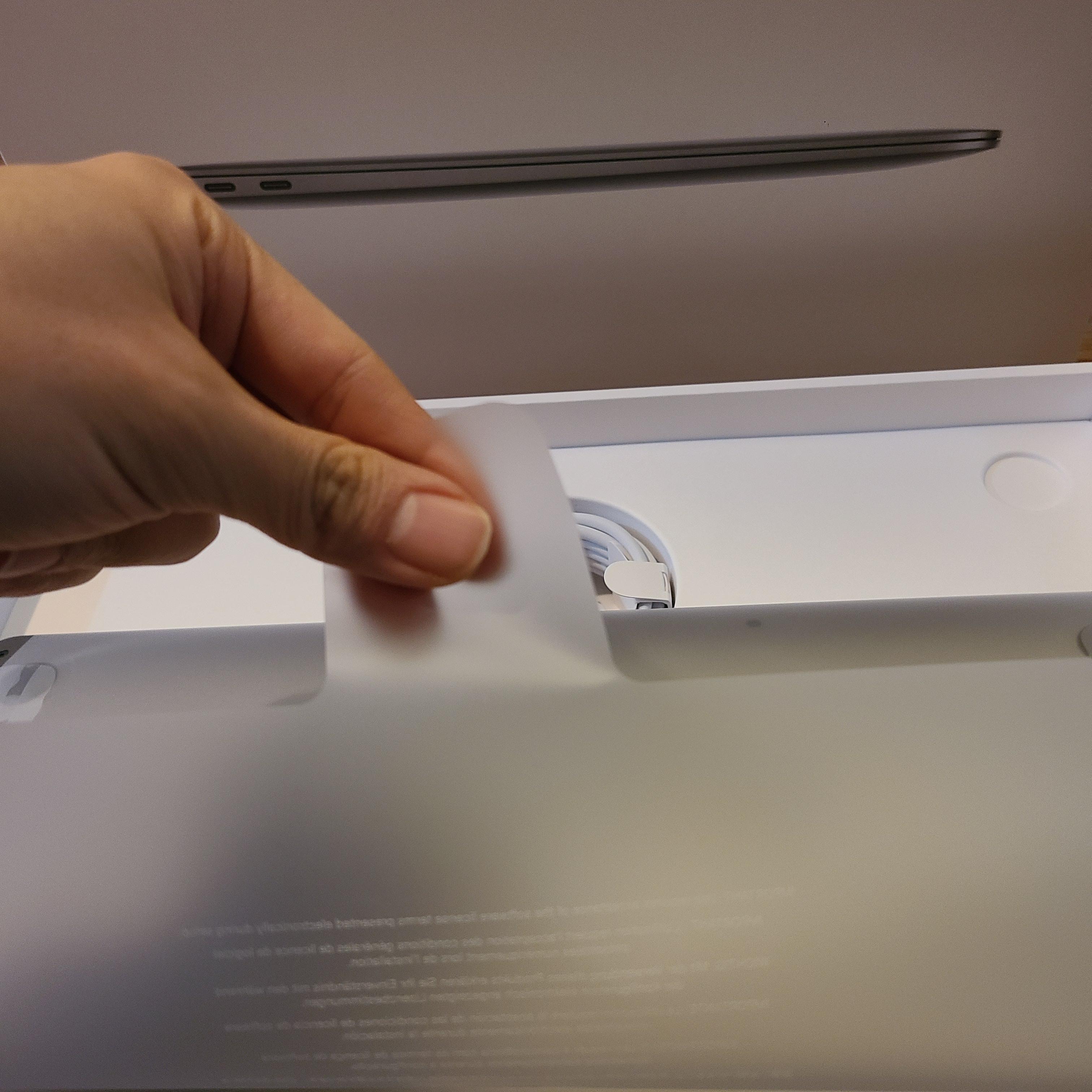 - 맥북 뒷면에서는 방금 집어올렸던 비닐 부분을 잡고 벗겨내면 된다.