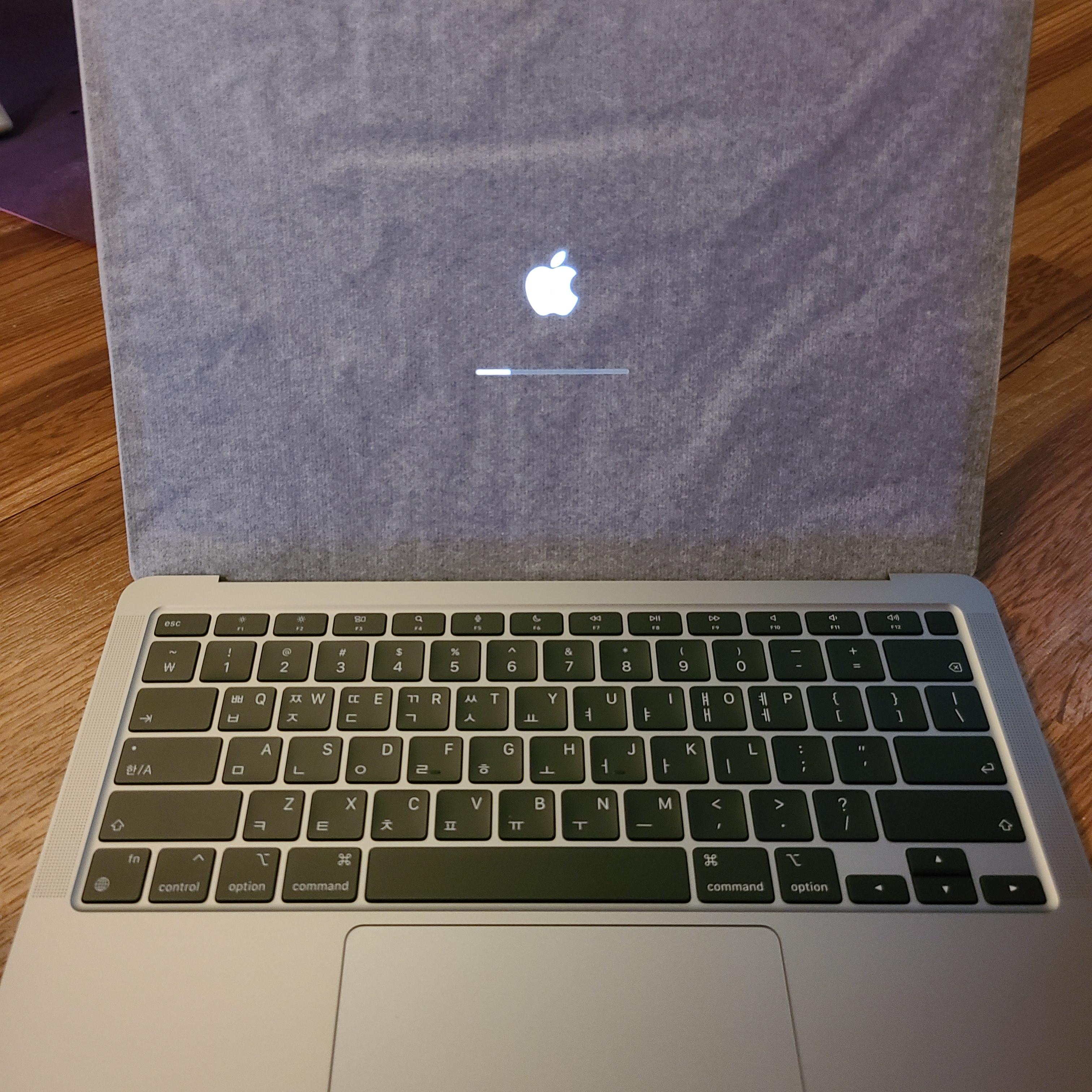 마지막으로 맥북을 열고 부팅키를 누르니..