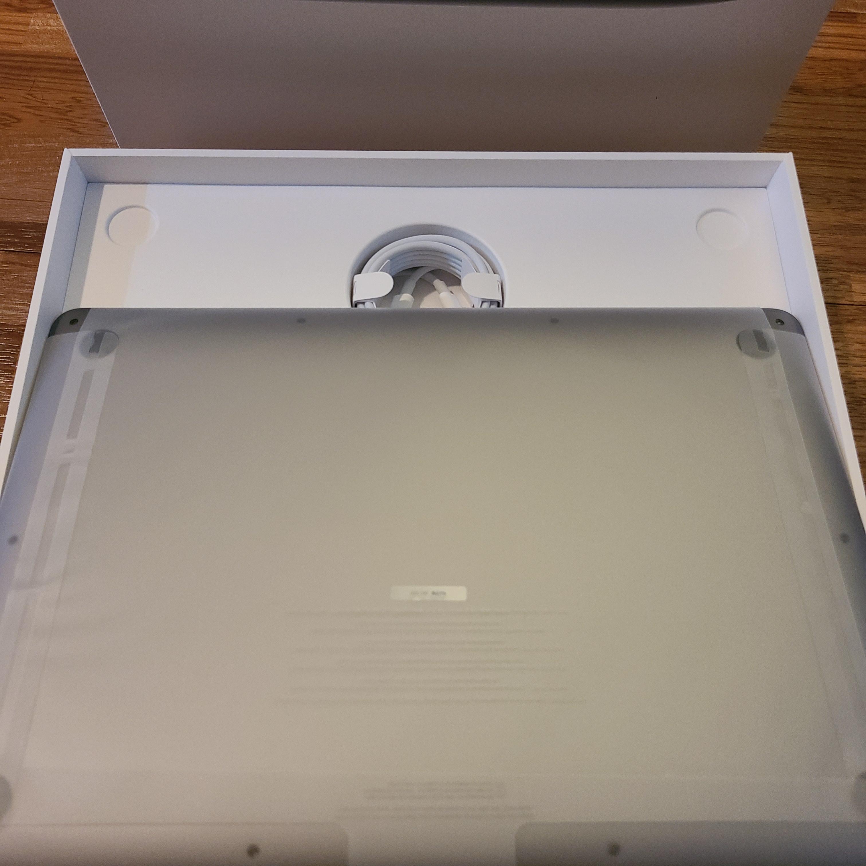 비닐로 잘 감싸진 맥북 본체의 상자가 나타난다.