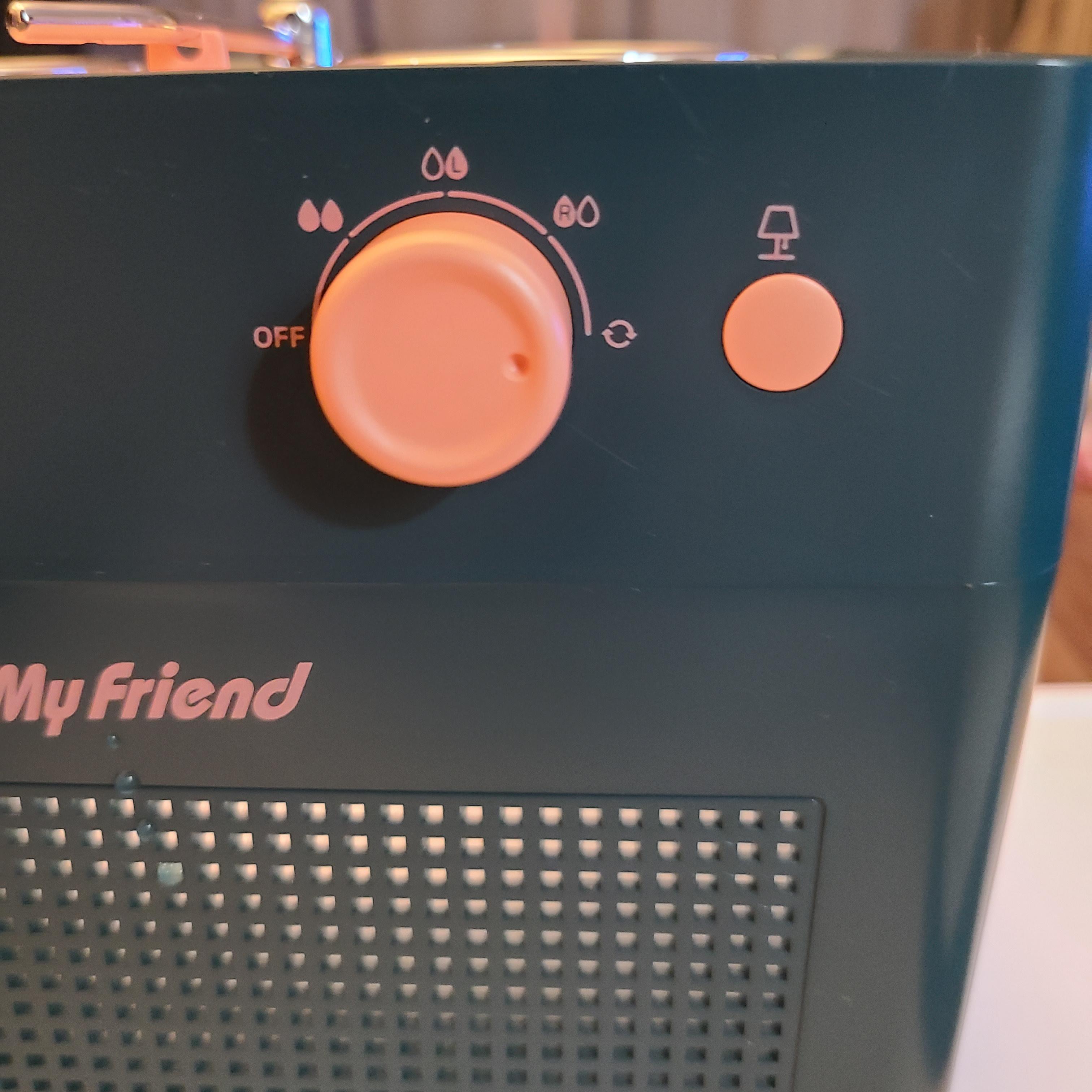 전면 우측에는 가습량 조절 버튼과 조명 on/off 버튼이 있다.
