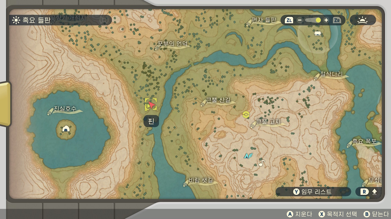 우선 흑요 들판의 포부의 언덕 남쪽으로 내려가보자. (시간 : 아침, 낮)