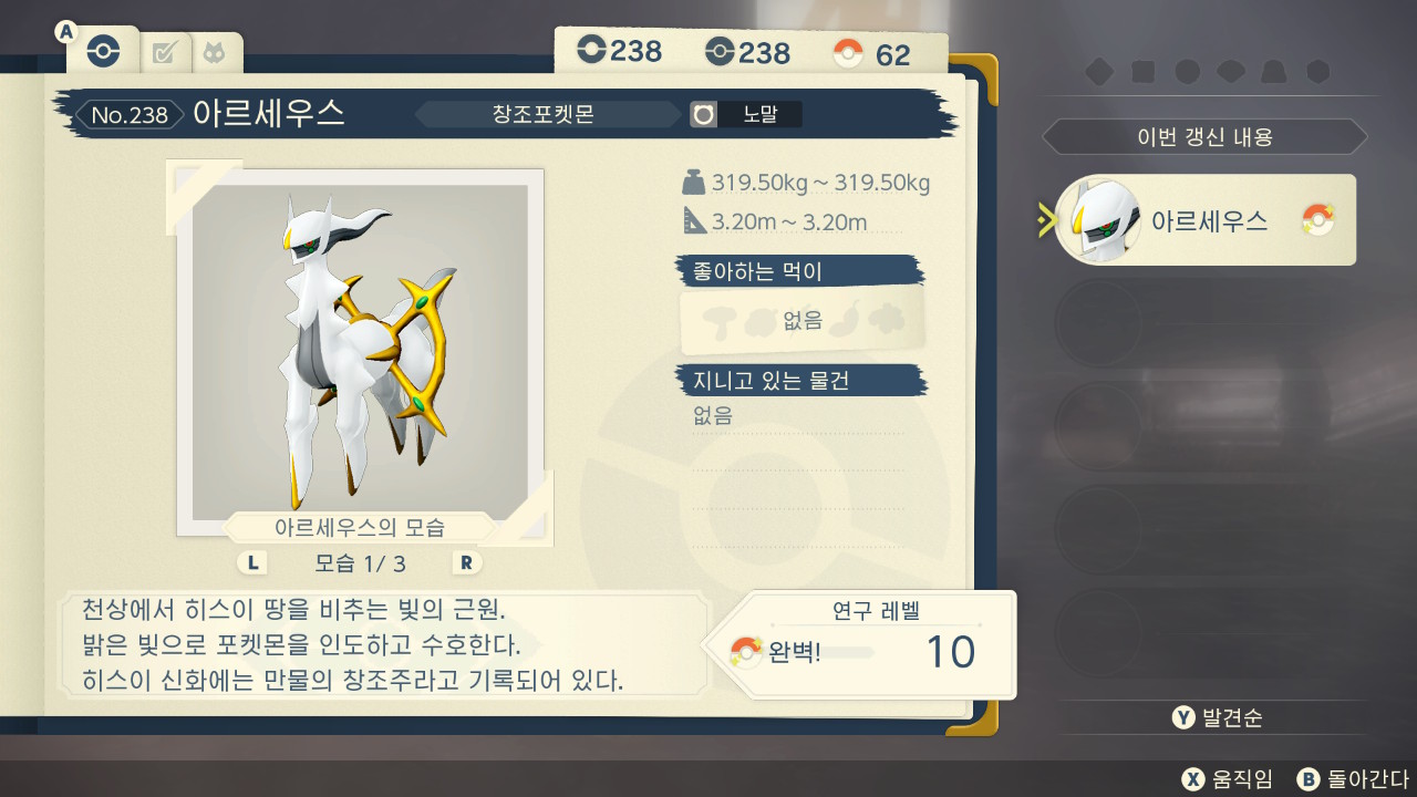 분신으로 받은 아르세우스는 <창조포켓몬> 의 설명이 붙는다.. 멋지군