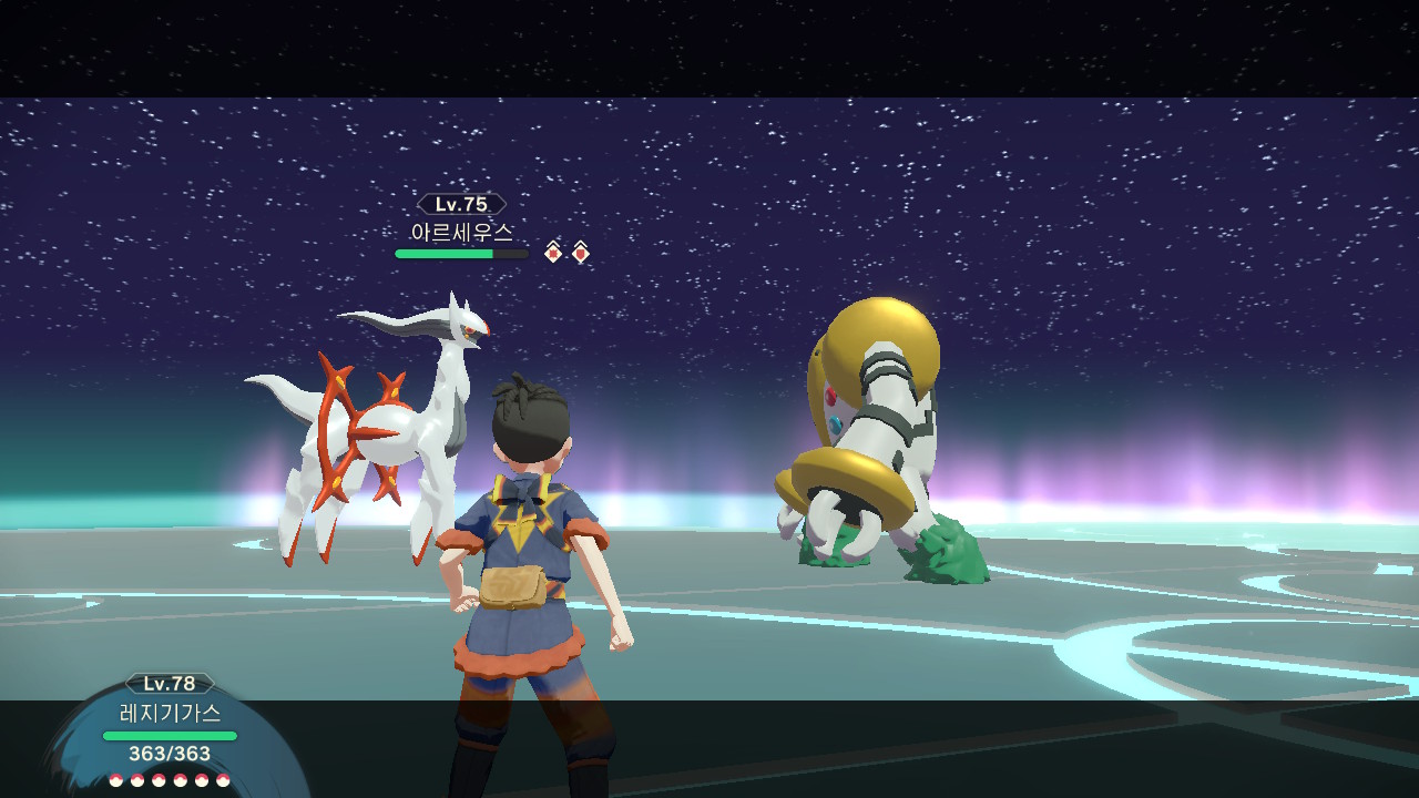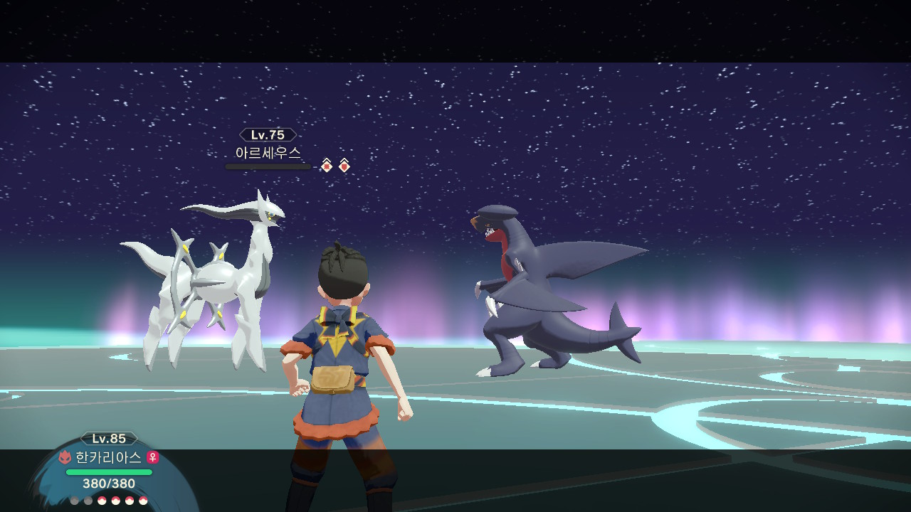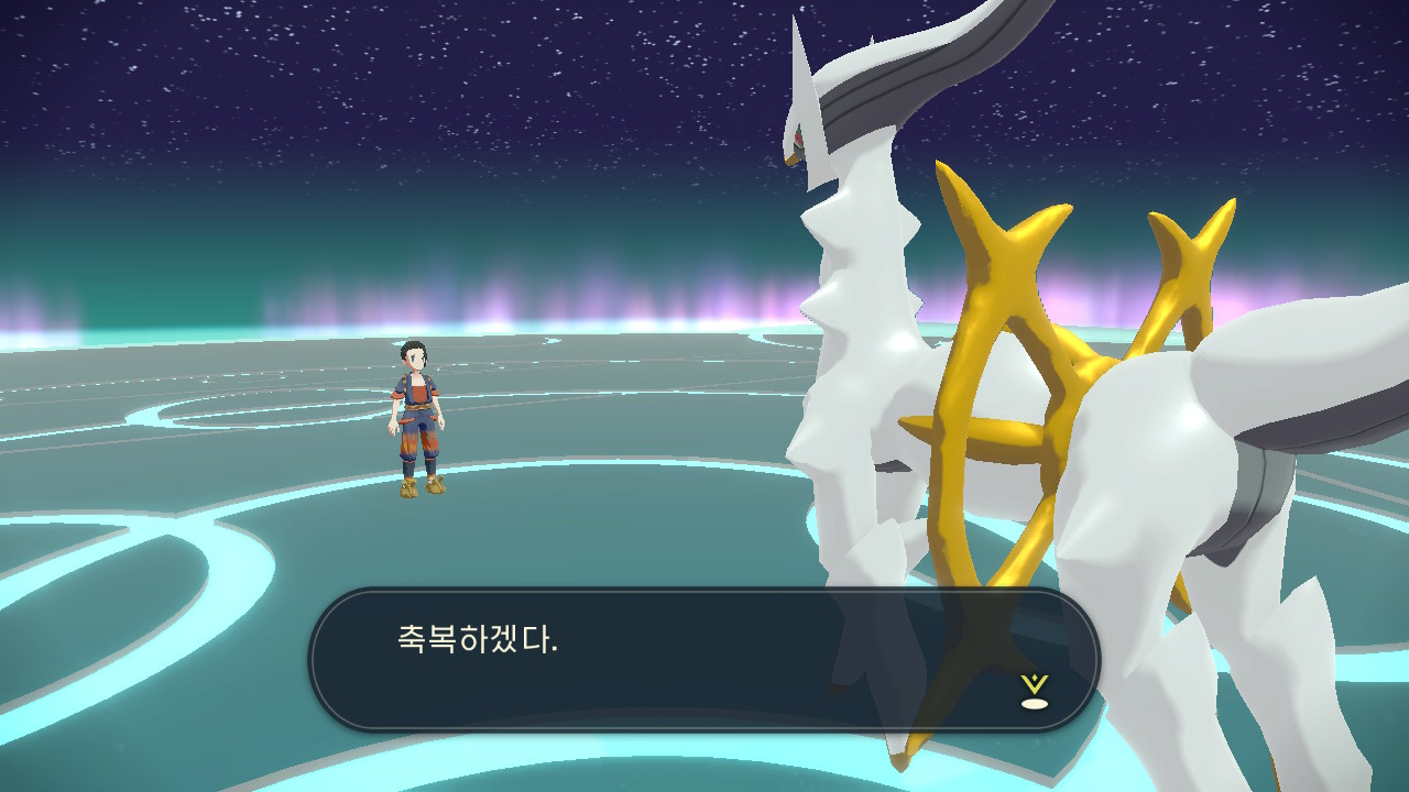이렇게 아르세우스와의 포켓몬 배틀에서 겨우겨우 승리를 거머쥐었다.