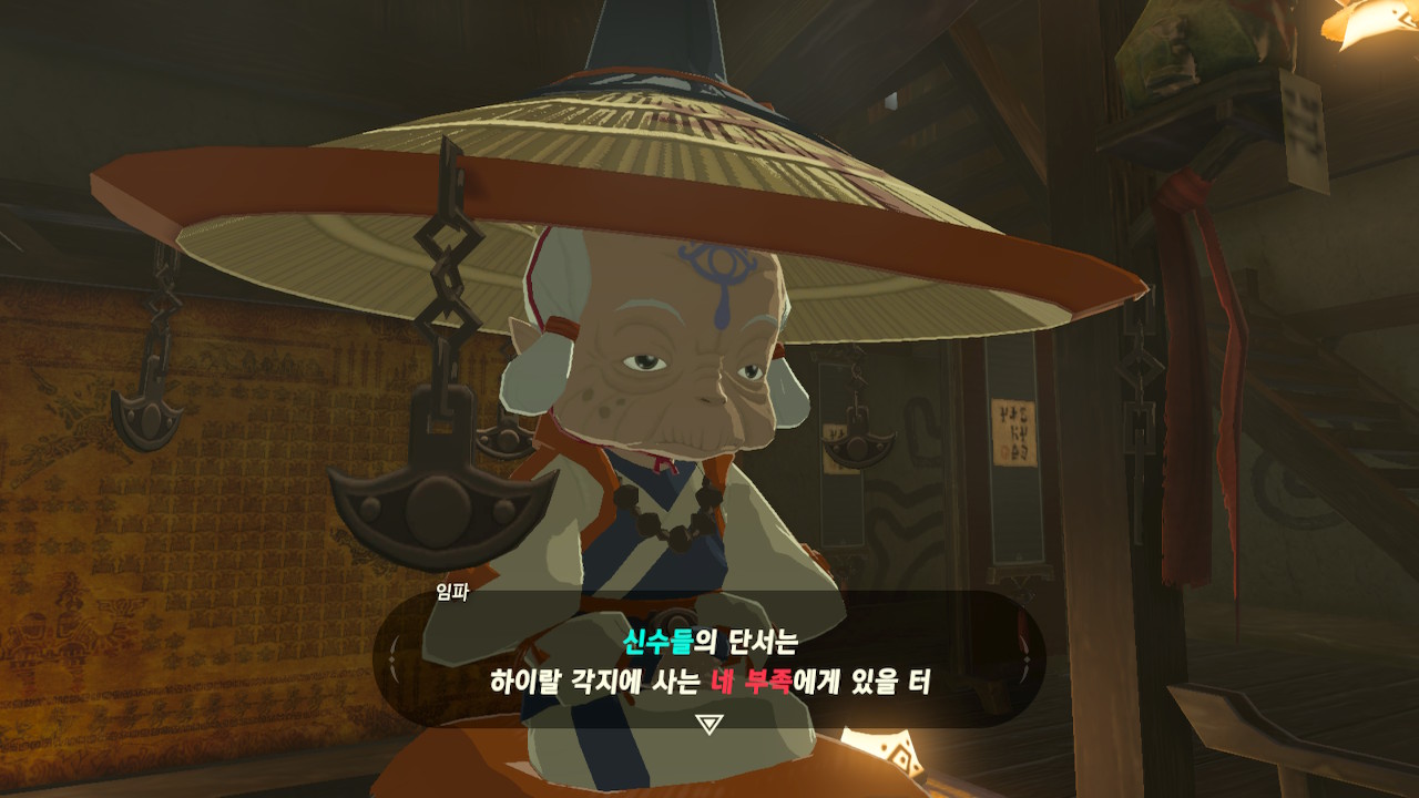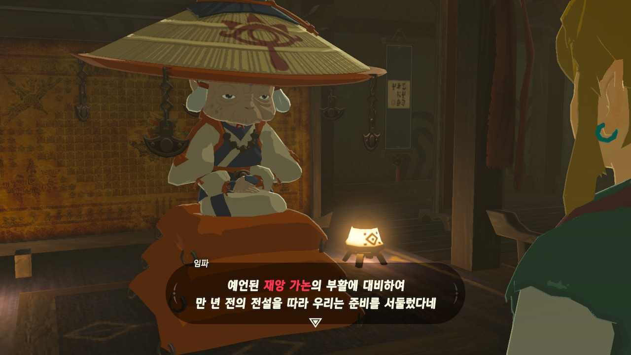 [공략] 젤다의 전설 : 야생의 숨결 - 타로-니히의 사당 [10] ~ 이전 이야기 ~ 카카리코에 도착하여 임파로부터 100년 전에 대한 이야기를 들은 링크.. 가논에게 침식당한 네 신수를 해방해야하
