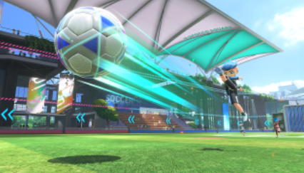 번들 상자 안에는 축구를 플레이하기 위한 레그 스트랩과 닌텐도 스위치 스포츠 타이틀이 들어있다.