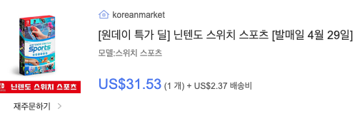 필자는 qoo10에서 특가로 풀릴 때 구매했다. 타이틀만 31.53달러에 배송비 2.37달러를 지불했다.