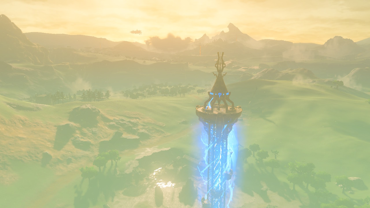 야카-마다의 사당을 클리어하고 돌아다니다보니 하이랄 왕국 성채와 어떤 탑이 보인다.