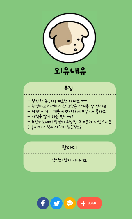 sns 등에 공유가능한 버튼이 하단에 표시된다. 이 버튼을 눌러서 지인에게 공유해보자!
