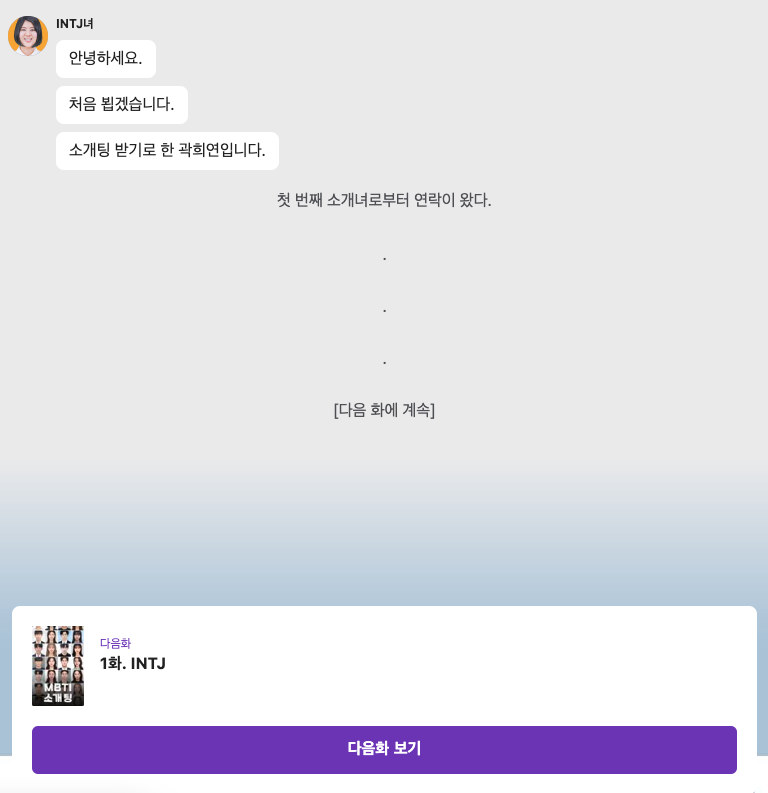 MBTI 소개팅 사이트에 접속하여 첫번째 에피소드부터 시작해보자.