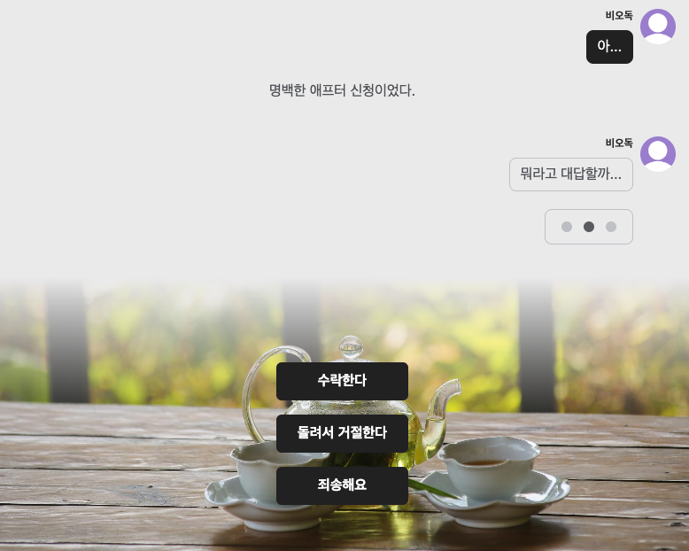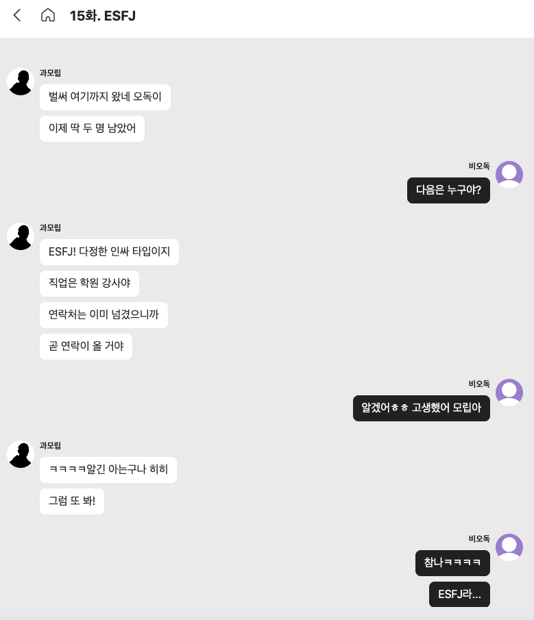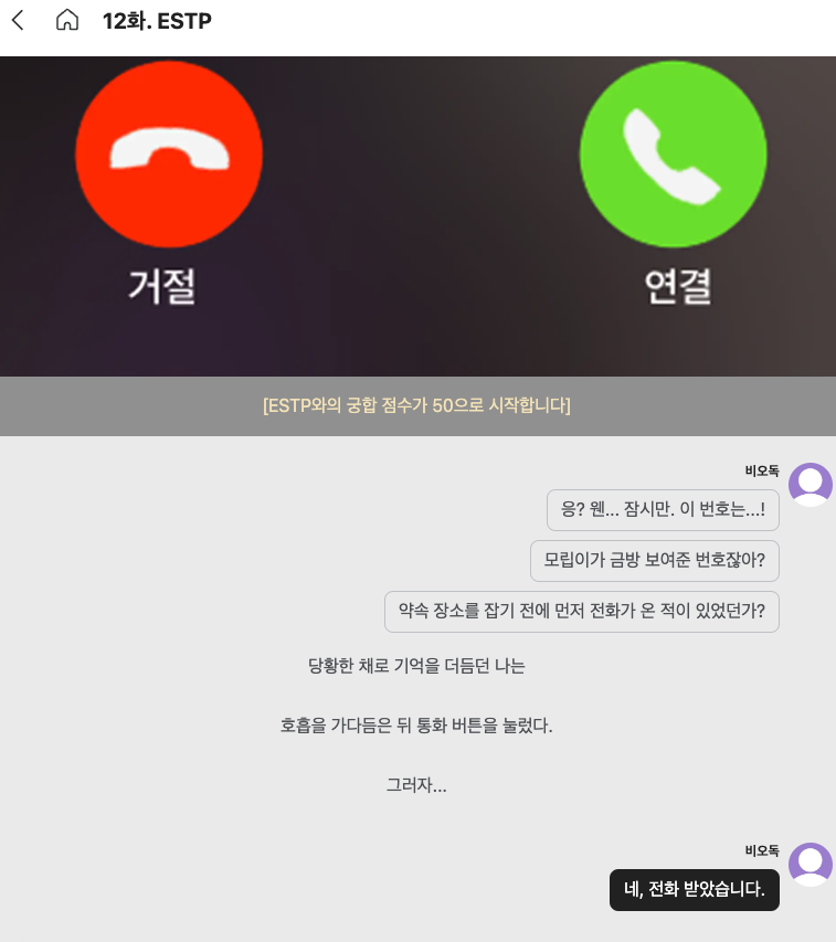 하다보면 몰입하면서 선택지를 고르고 상대방 반응에도 꽤 신경을 쓰게되었다.