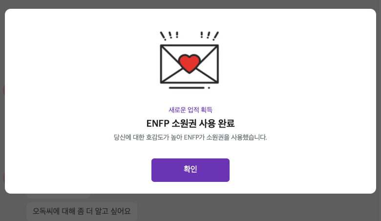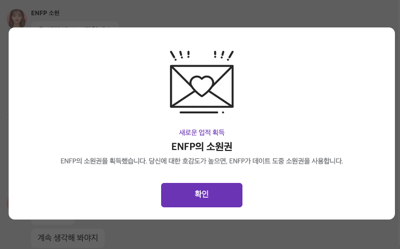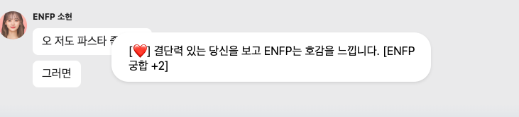ENFP의 소원권은 호감도가 높아졌을 때 상대가 소원권을 사용하면서 대화가 더욱 좋은 방향으로 흘러간다.