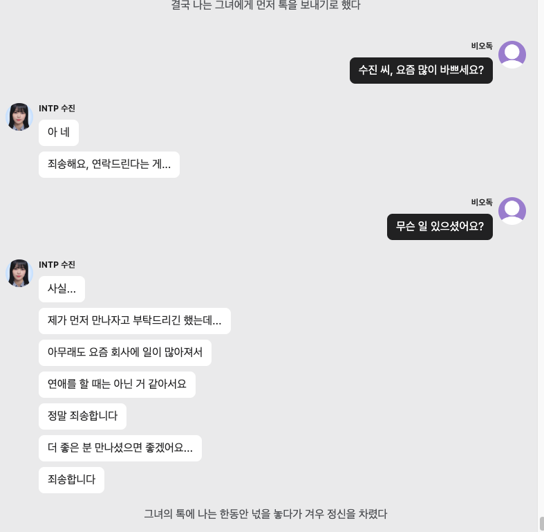가상의 소개팅 속에서 홀로 가상의 연애까지 해버린 상대... ㅠㅠ