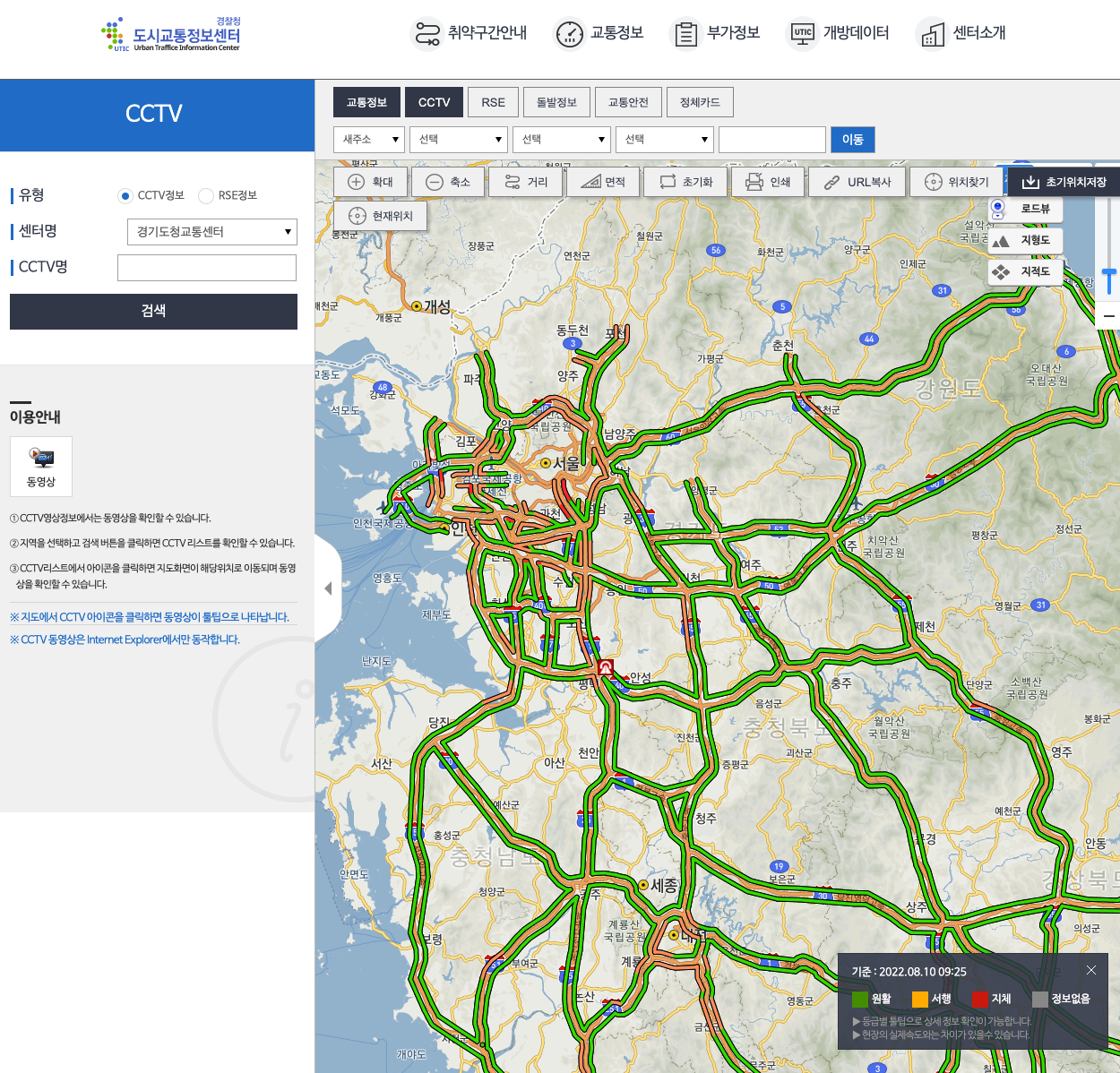 <경찰청 도시교통정보센터>에서 전국 도로망 근처의 CCTV를 확인할 수 있다.