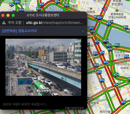 직접 지도로 찾아가서 근처의 CCTV영상을 클릭 및 확인하면 된다.