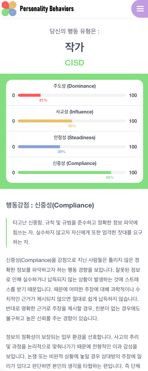 필자의 결과는 작가 (CISD) 이다.