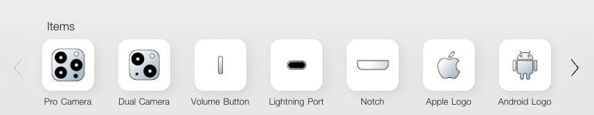 해당 사이트에 접속하면 아이폰의 기본 프레임(틀)과 그 위를 꾸밀수 있는 아이템들이 보인다.