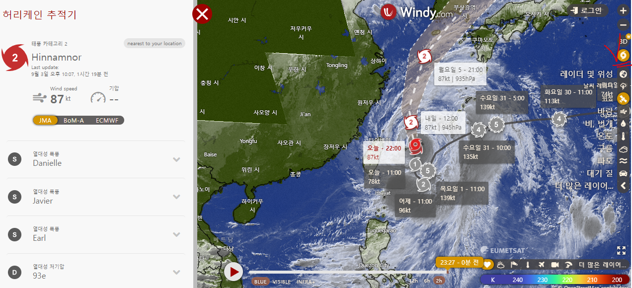 (아래 사진의 우측 상단 태풍 버튼 클릭!)