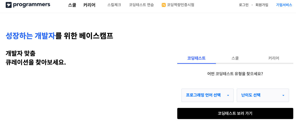 프로그래머스는 국내 수많은 IT기업의 코딩테스트를 진행하는 플랫폼이기도 하다.