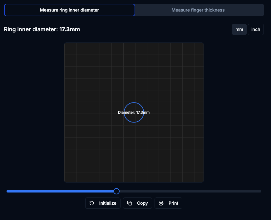 Measure ring inner diameterMeasure finger thickness Ring inner diameter: 17.3mm mminch