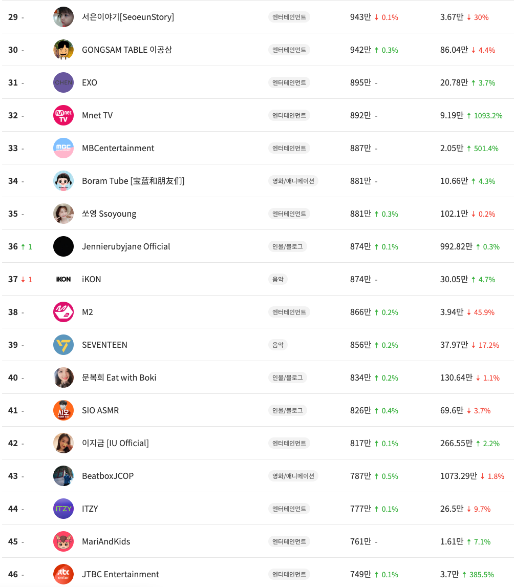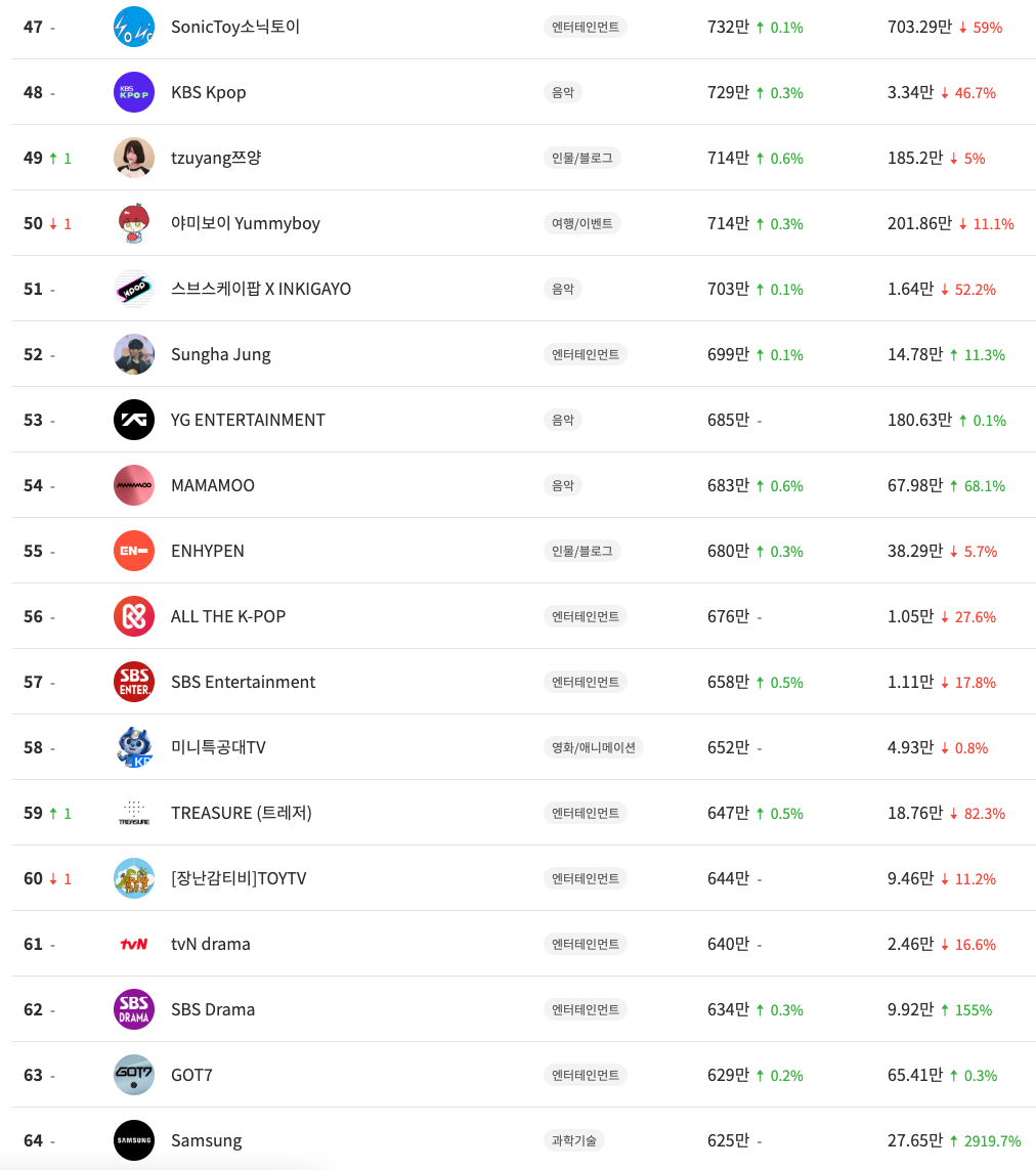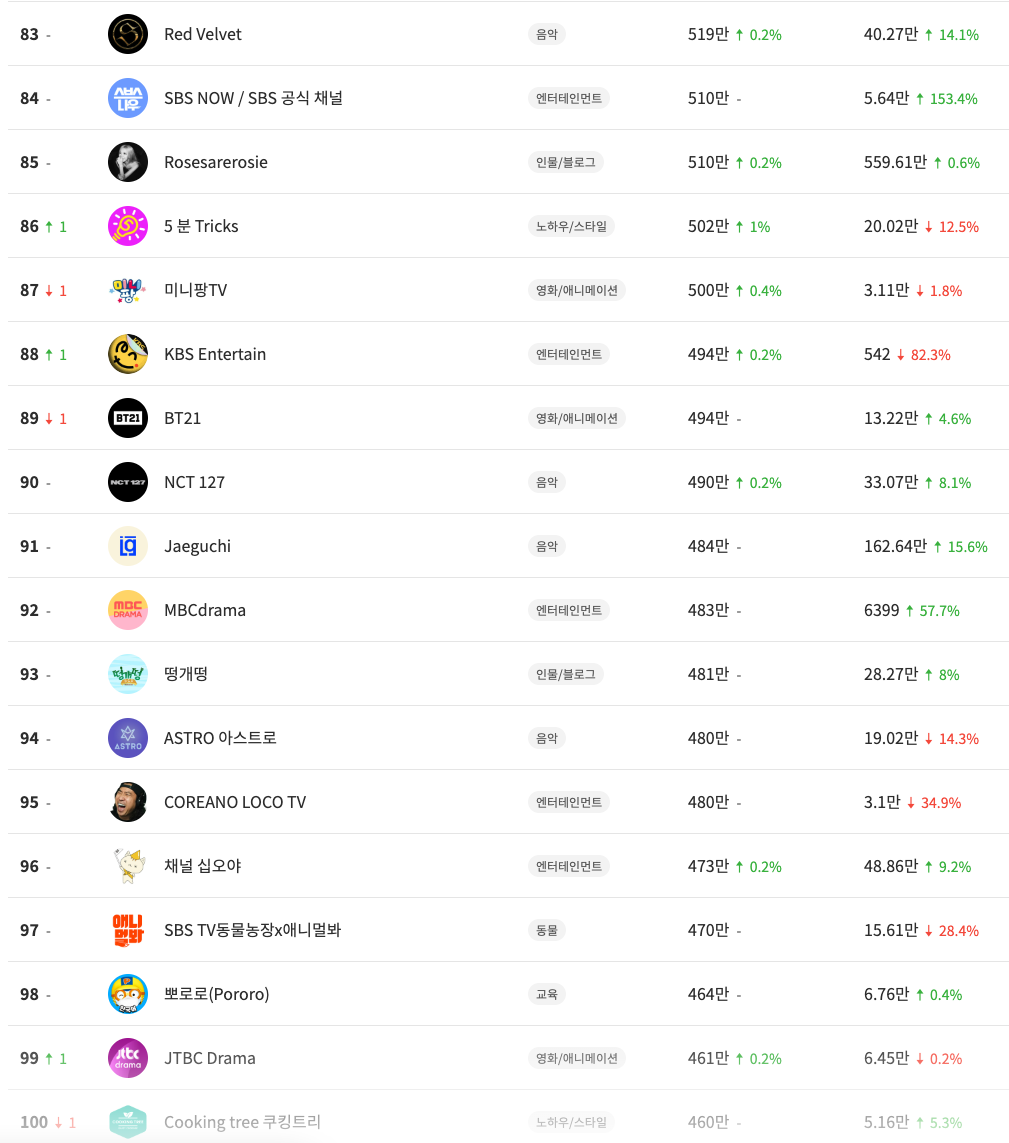 지금까지 국내 유튜버 TOP 100을 확인했다.