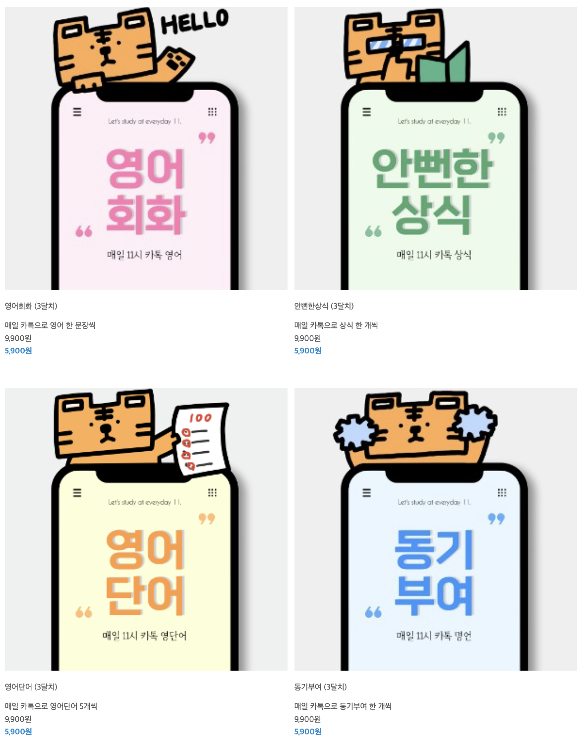 <매일 11시>는 매일 아침 11시 마다 테마 별 영어 한 문장을 카톡으로 보내준다.