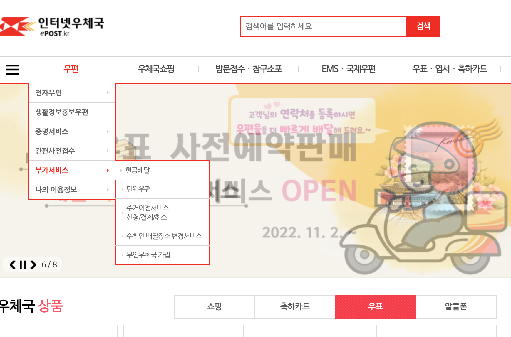 - 서비스 연장은 우체국 창구에서만 가능하며, 서비스 취소는 인터넷우체국 결제건만 가능합니다.