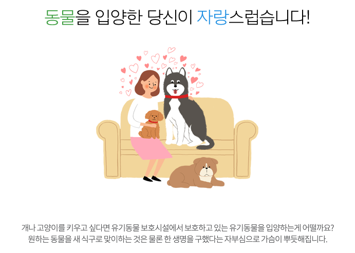 유기 동물 센터에서 보호하고 있는 동물들을 보거나, 입양하려면 <동물보호관리시스템>을 참고하면 된다.