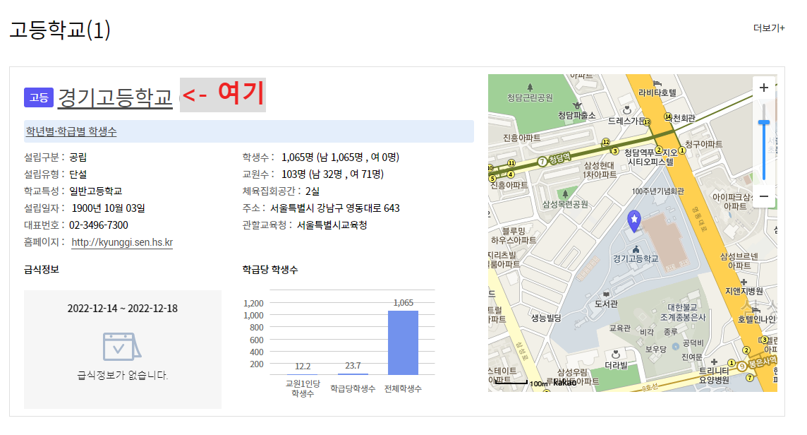 다음과 같이 검색한 학교에 대한 상세 정보를 더 볼 수있다.