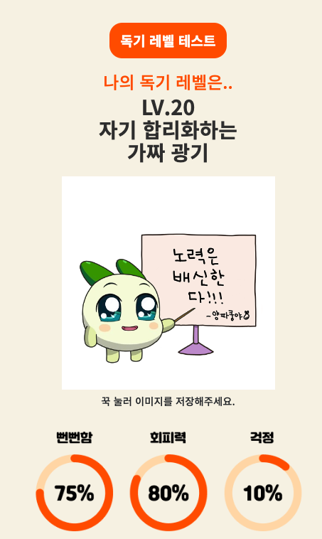 일상에 치이고 사람들에게 데이다보면 내면이 흑화(?)할 때가 있다.. 재미삼아 독기를 테스트해보자.