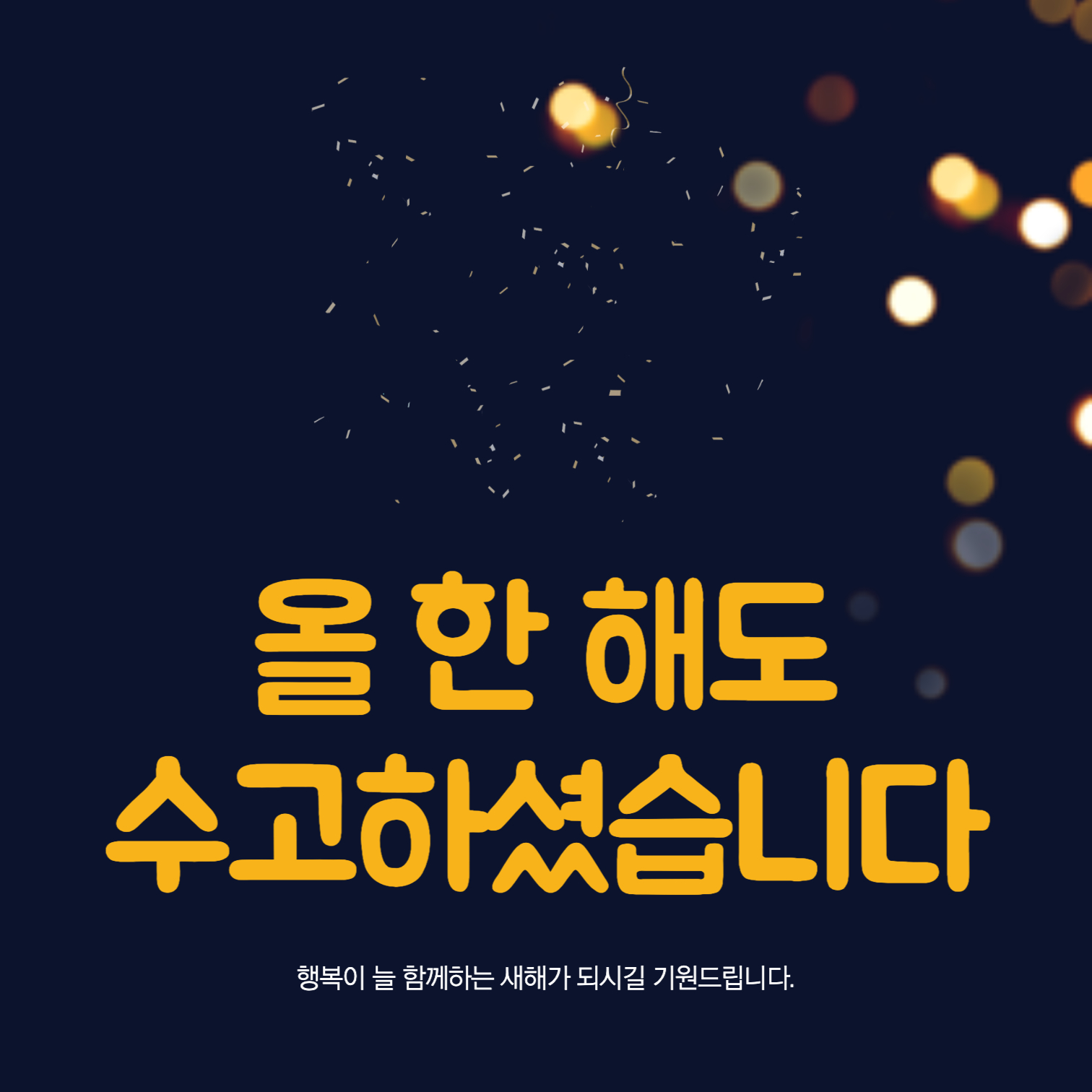 - 사진 설명 : 올 한 해도 수고하셨습니다. 행복이 늘 함께하는 새해가 되시길 기원드립니다.