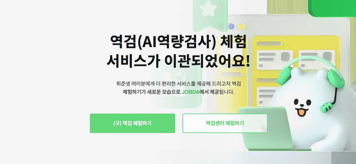 잡플렉스의 AI역량검사 사이트에서는 (구) 역량검사와 최신 역량검사를 체험할 수 있다.