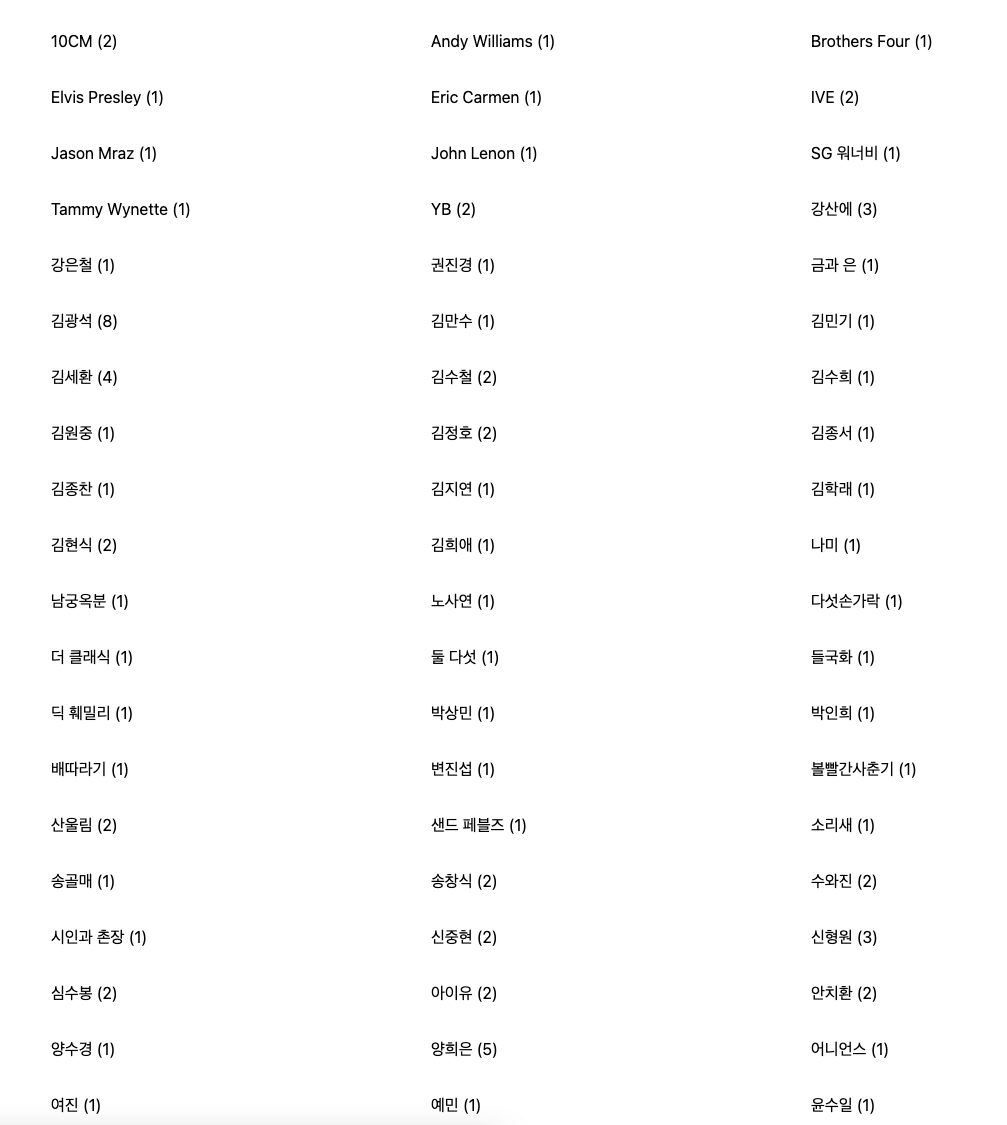 아티스트 목록
