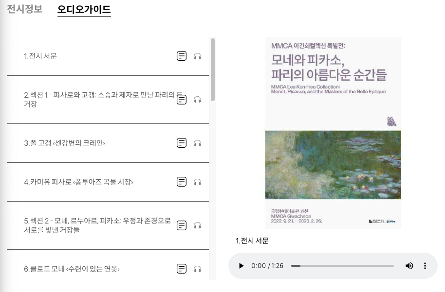이렇게 작품 별 오디오가이드 리스트가 나타난다.