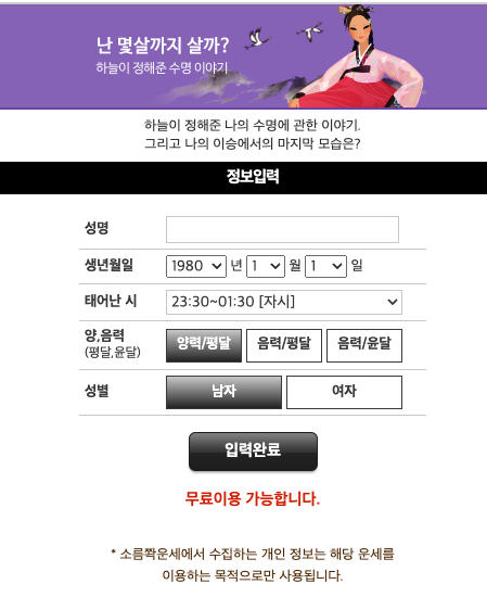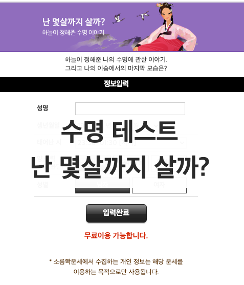 사주닷컴이라는 사이트에서 나의 남은 수명과 이승에서의 마지막 모습을 알려주는 서비스를 제공하여 흥미롭다.